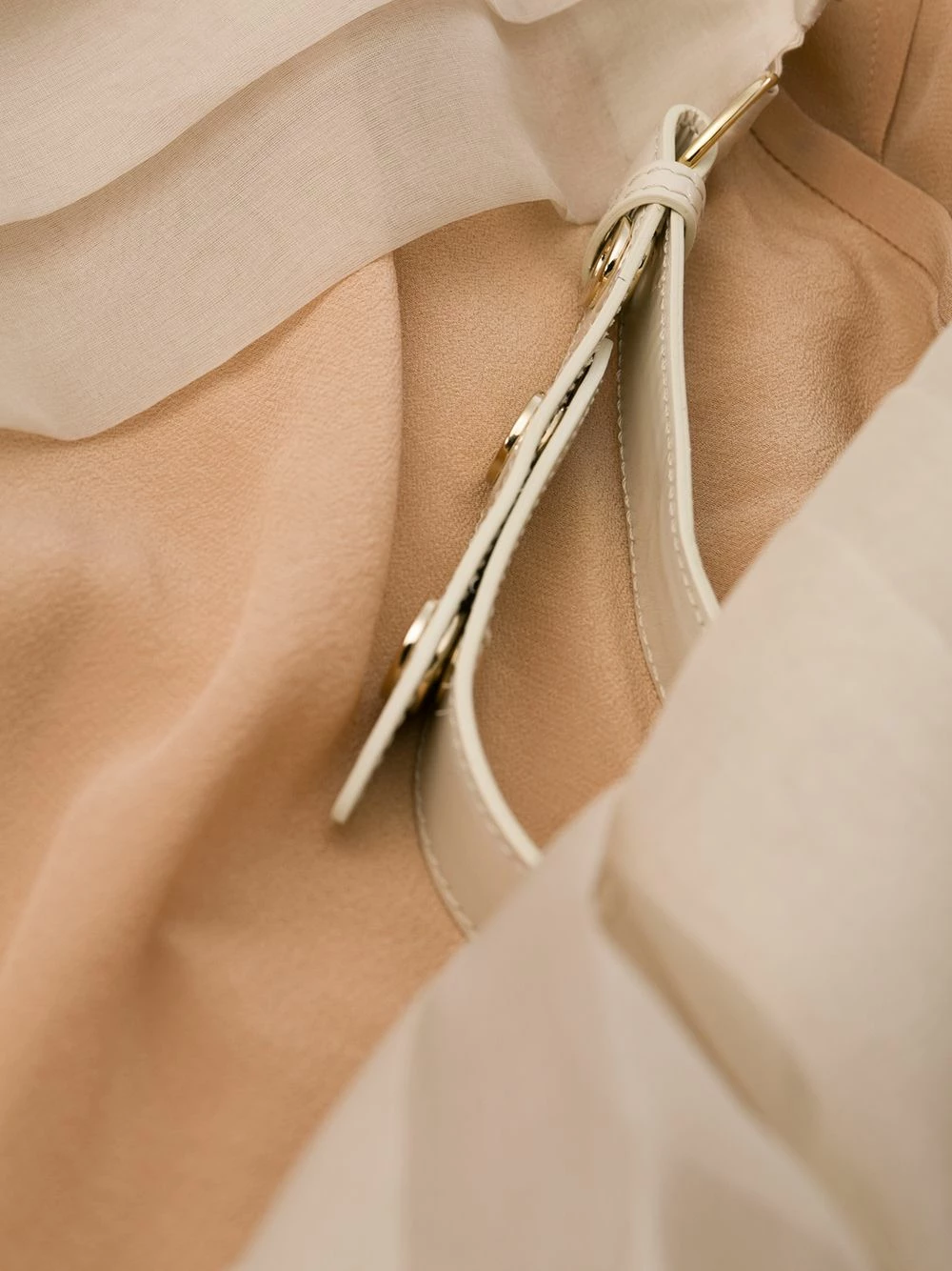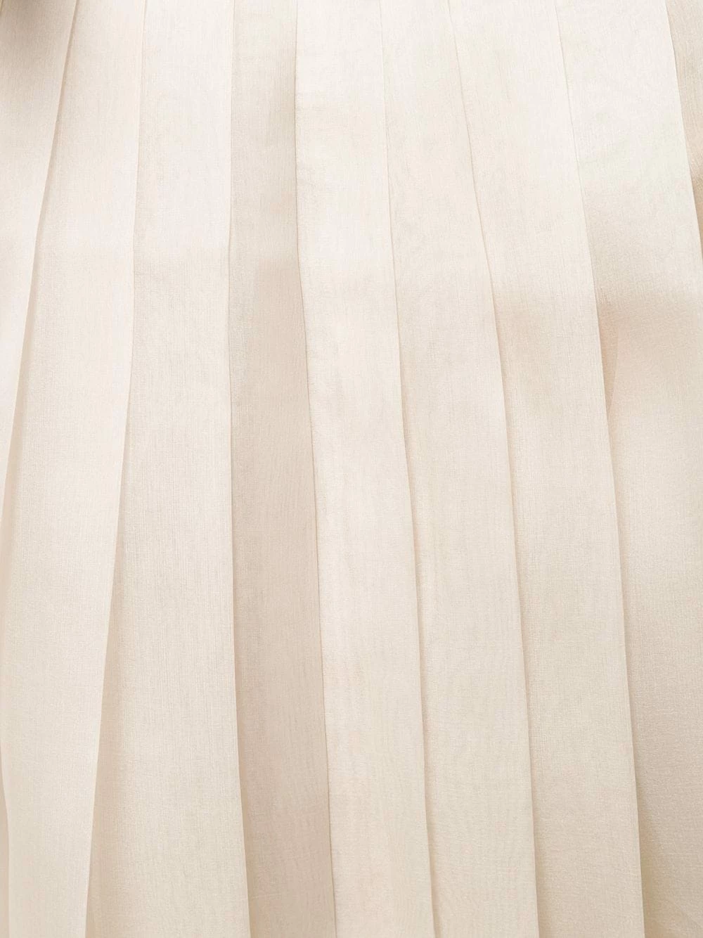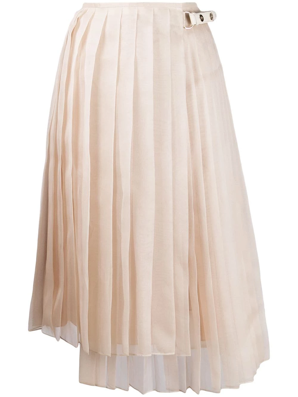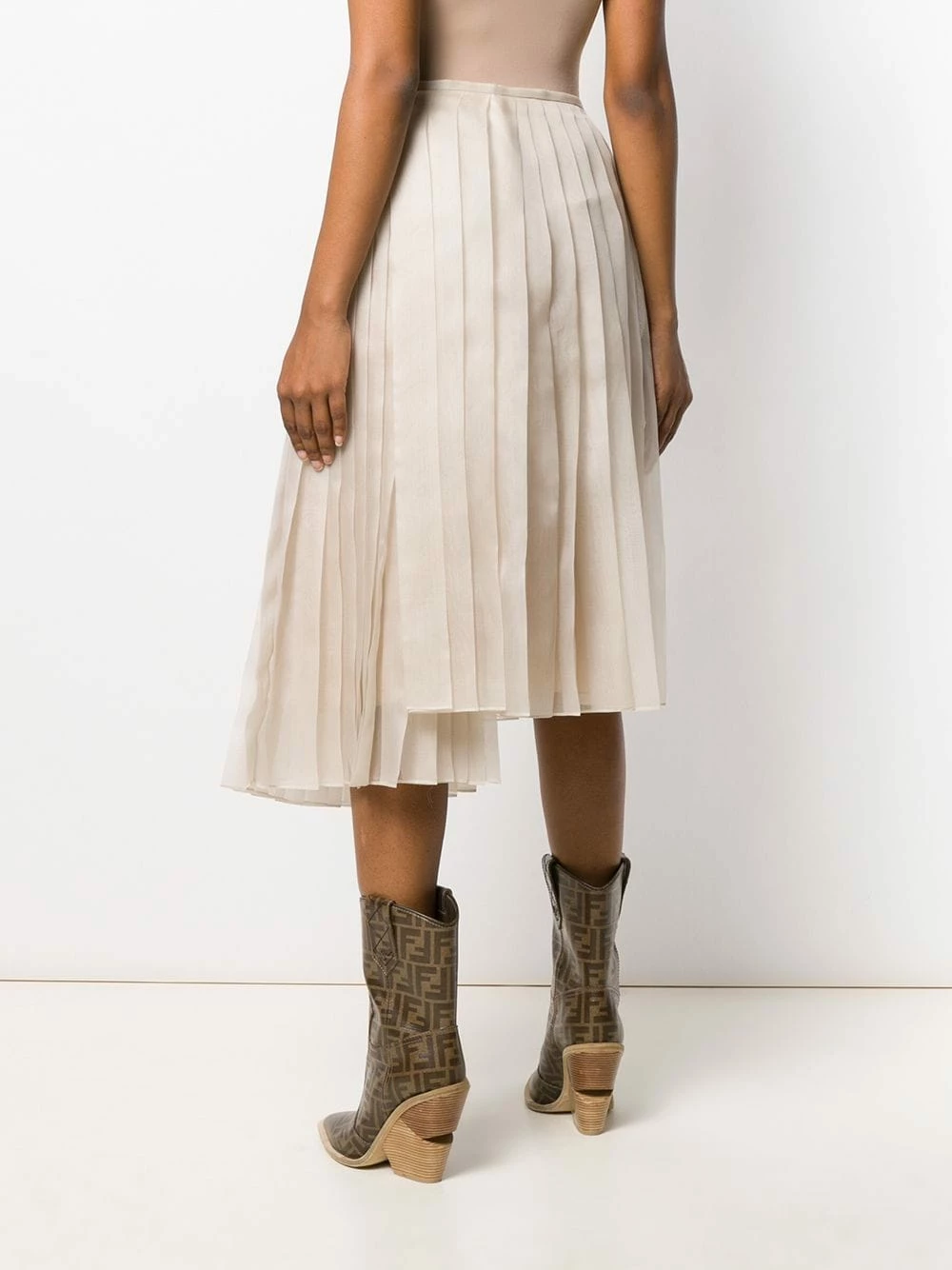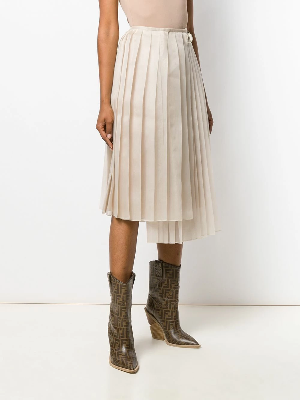 This new season expect to see classic Fendi glamour with a twist. The brand hits all the right notes with a spectacularly immaculate tailored collection that is filled with vibrant colours and monograms.Crafted from pearlescent white silk organza, this asymmetric pleated skirt from Fendi features an asymmetric hemline, a wrap waist, a side strap and interior button fastening, a pleated design and a mid-length.