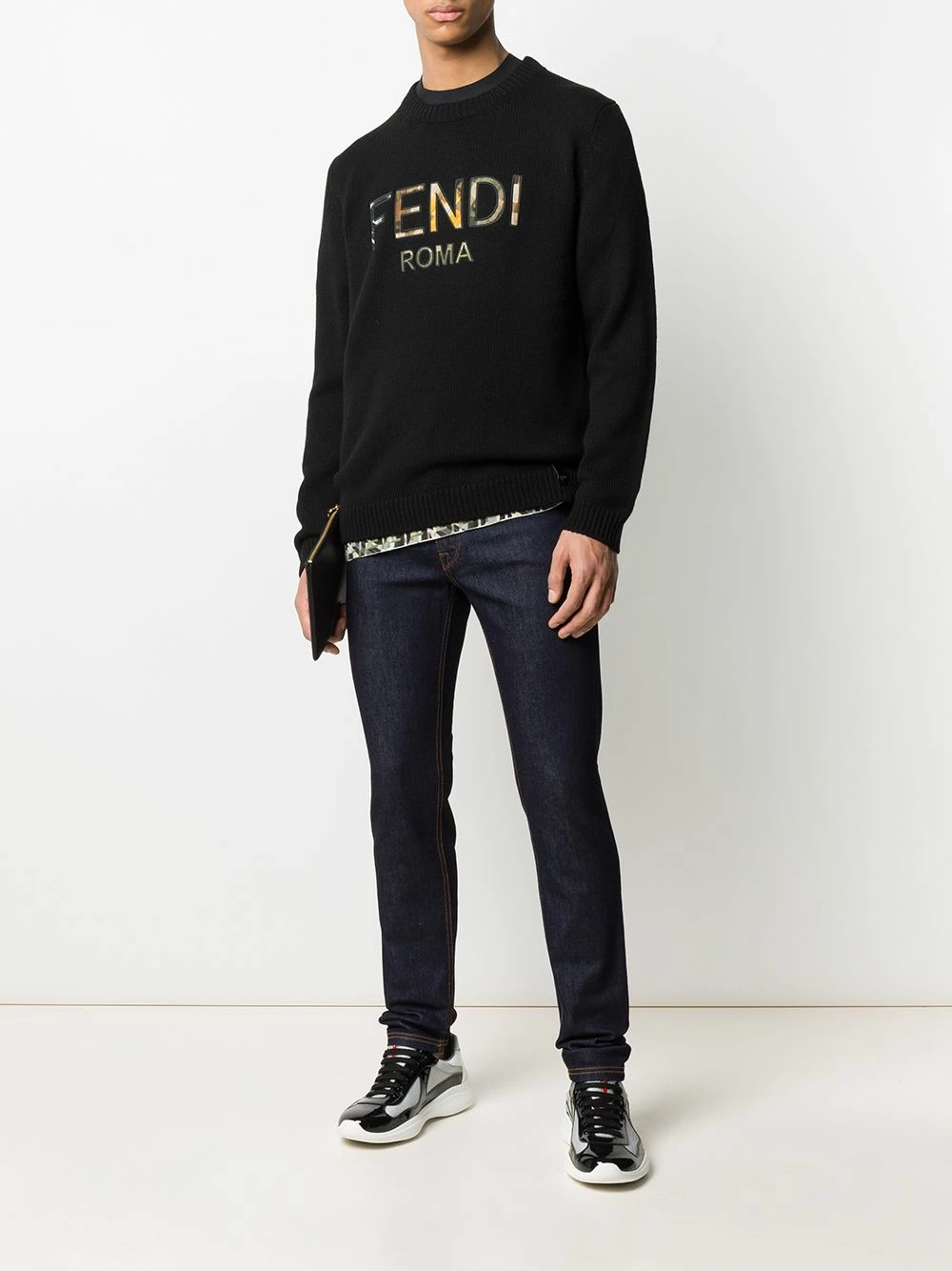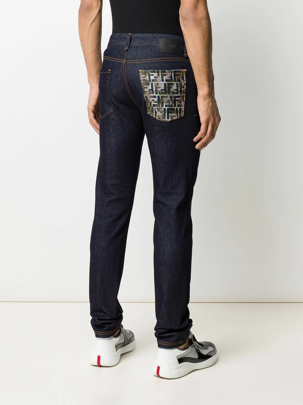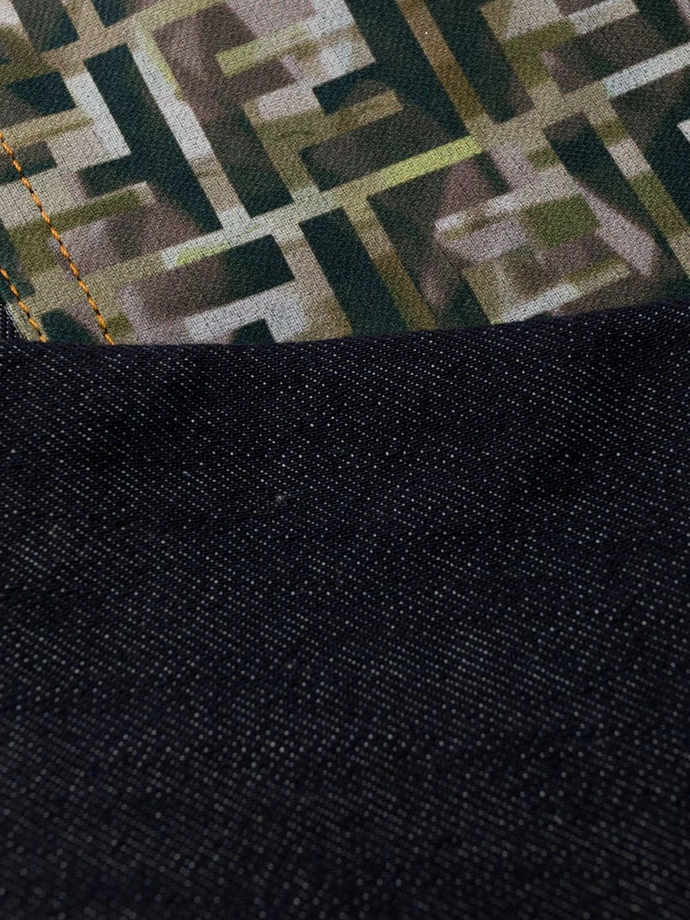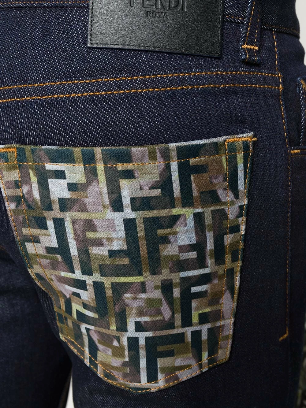 In the jungle, camouflage is an effective way of hiding from the enemy, in the concrete jungle, these camo detail slim denim jeans from Fendi have the opposite effect. Featuring a waistband with belt loops, a five pocket design, a button and zip fly, a camouflage pattern, a leather brand patch to the rear and a slim fit.
