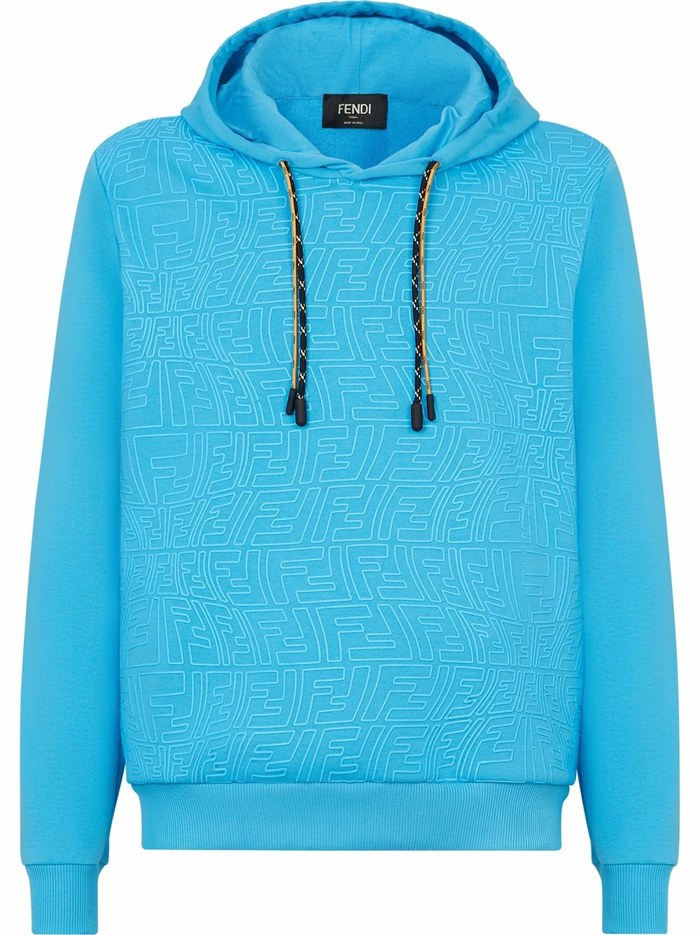 Your wardrobe deserves a fresh twist and Fendi is just the fashion house that will give it to you. Boasting a distorted monogram pattern on a bright blue hooded sweatshirt, this top is just the bold touch you’ve been hunting for. Wear with confidence.