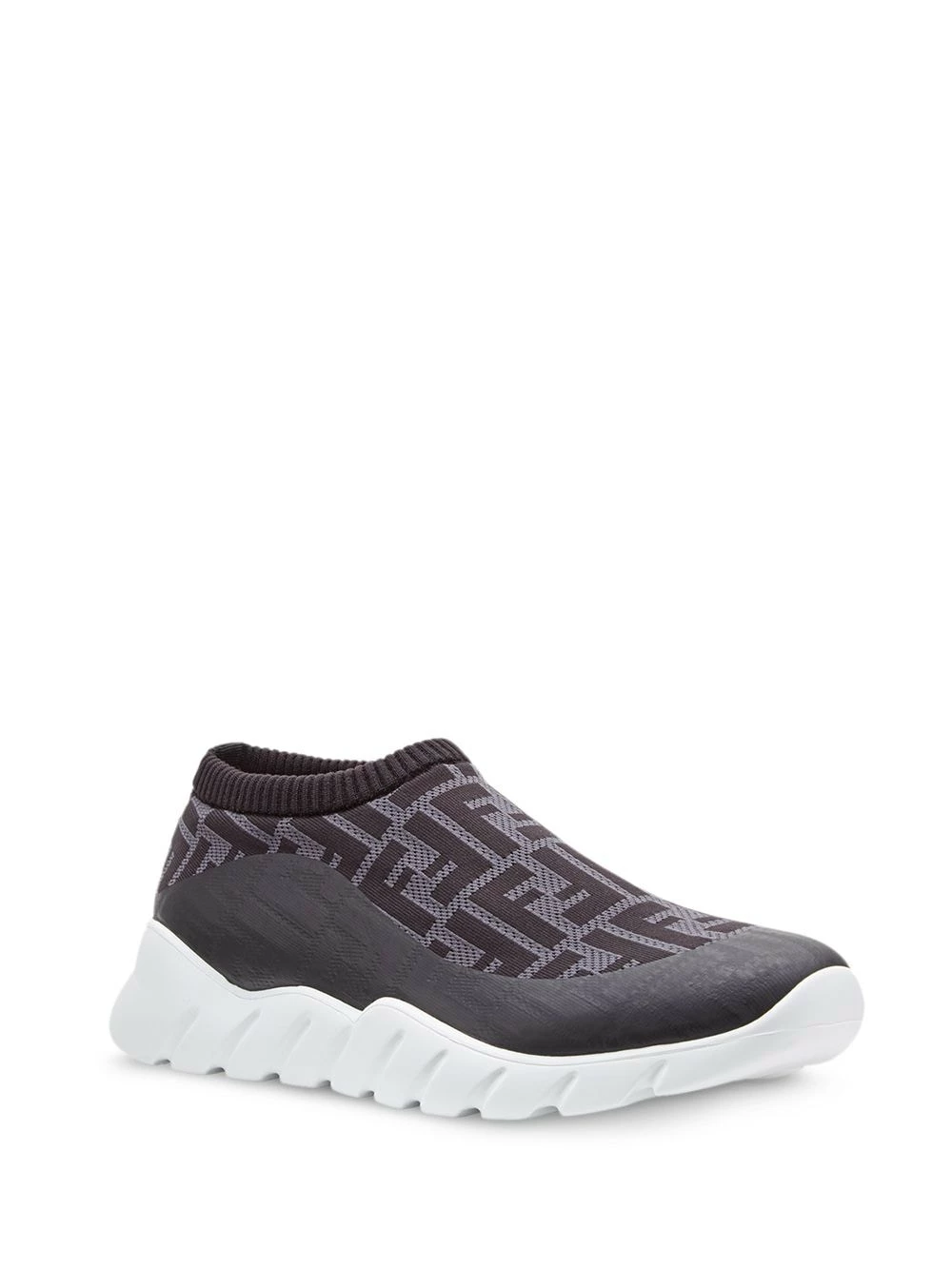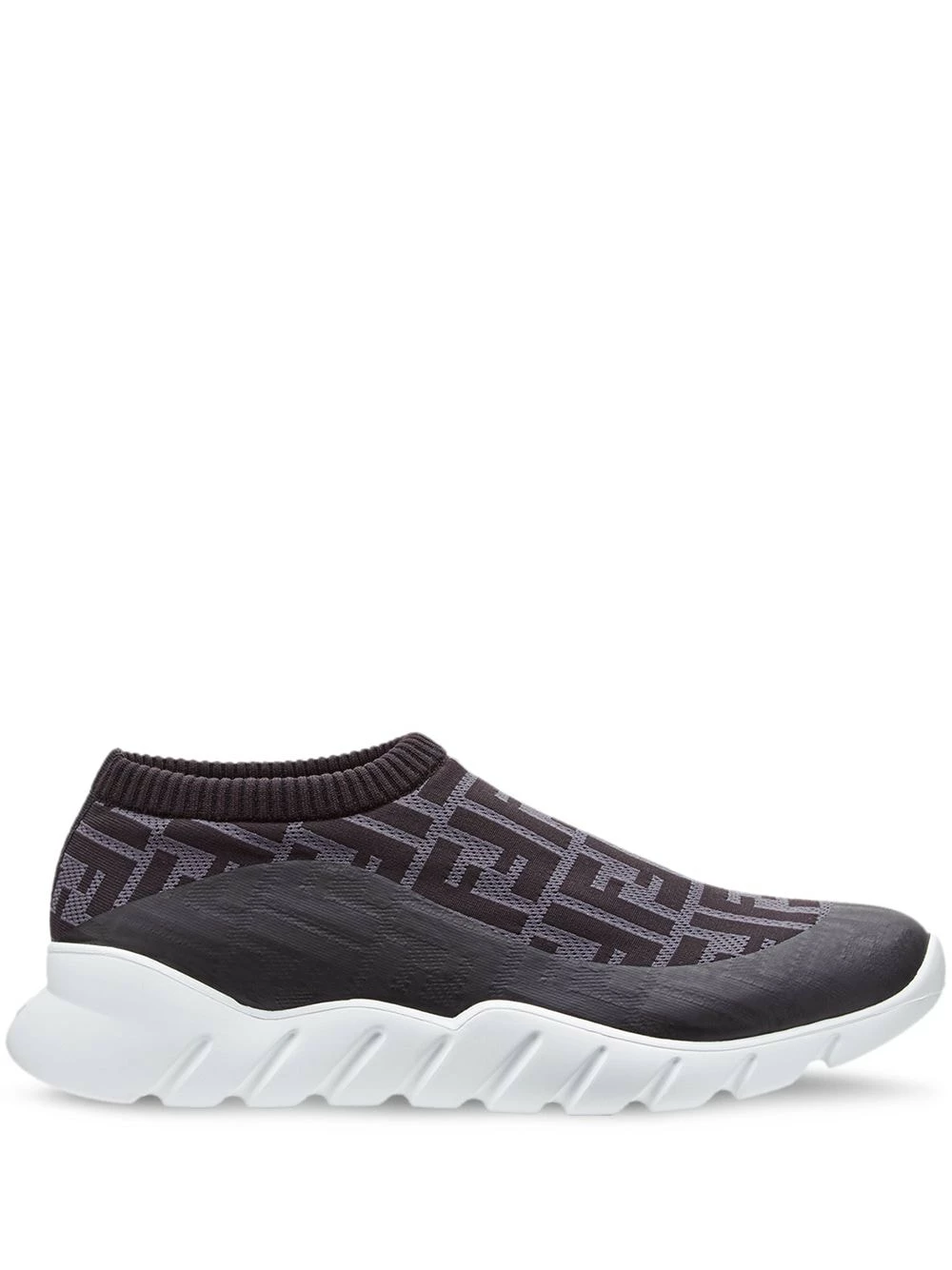 Fendiβs newest collection is stunningly adorned with beautiful and alluring patterns and prints. By mixing a joyful palette of colours with delicate and unique embroideries and motifs, Fendi has done it once again. These white, black and brown FF logo slip-on sneakers are crafted from a cotton blend and feature a round toe, a fine knit, a branded insole, undulated rubber soles and ribbed elastic edging.