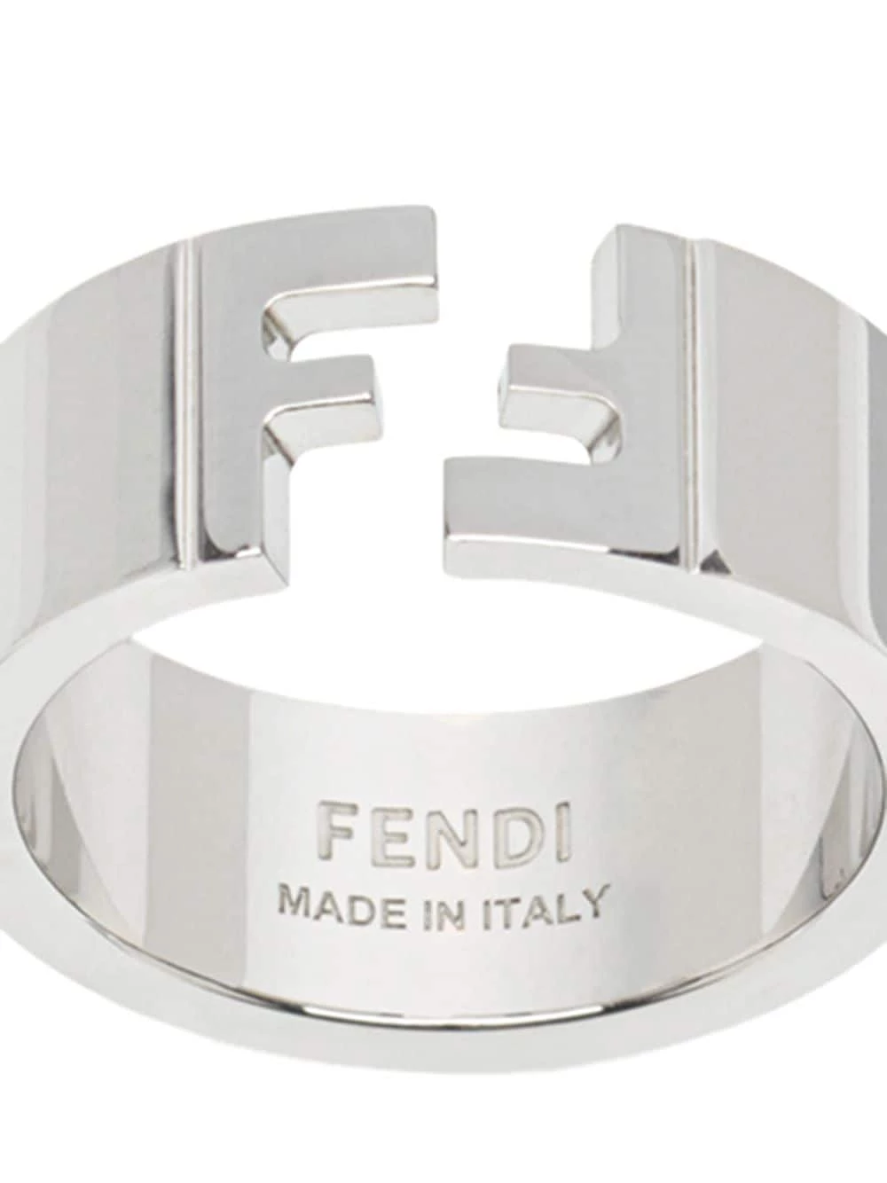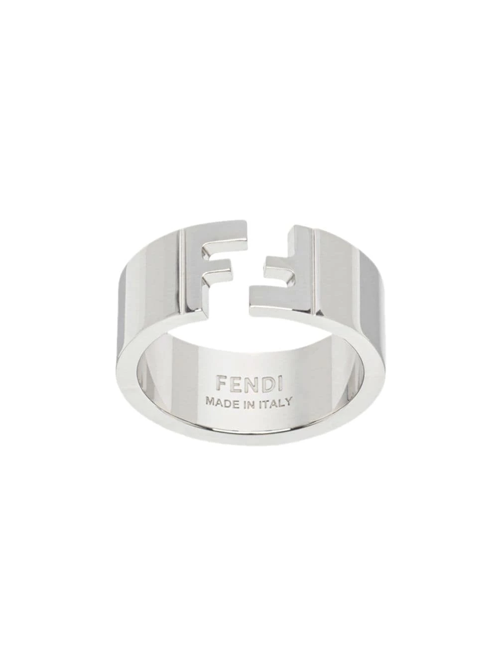 Fendiβs FF logo takes centre stage here. Unapologetically bold, this ring is sure to make an impact. Grab it now for instant style. Featuring an engraved logo, a silver-tone finish, a cut out logo detail and a wide band.