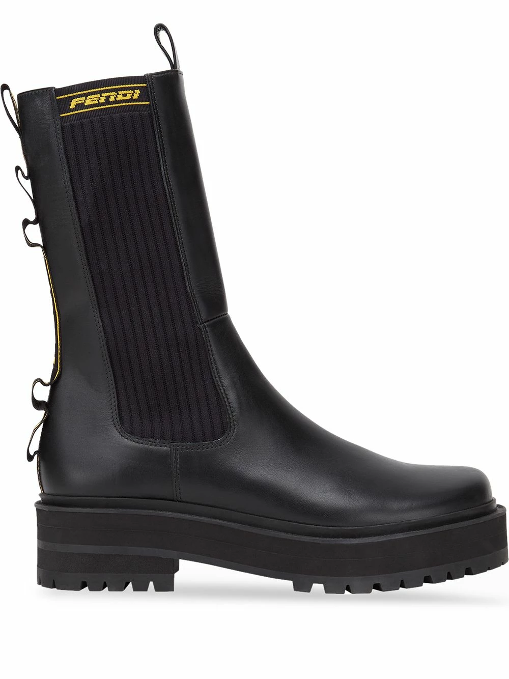 Remember, these boots were made for walking. Constructed from calf leather and boasting a logo-tape detail, there are really no doubts about that. Fendi, always on our side.