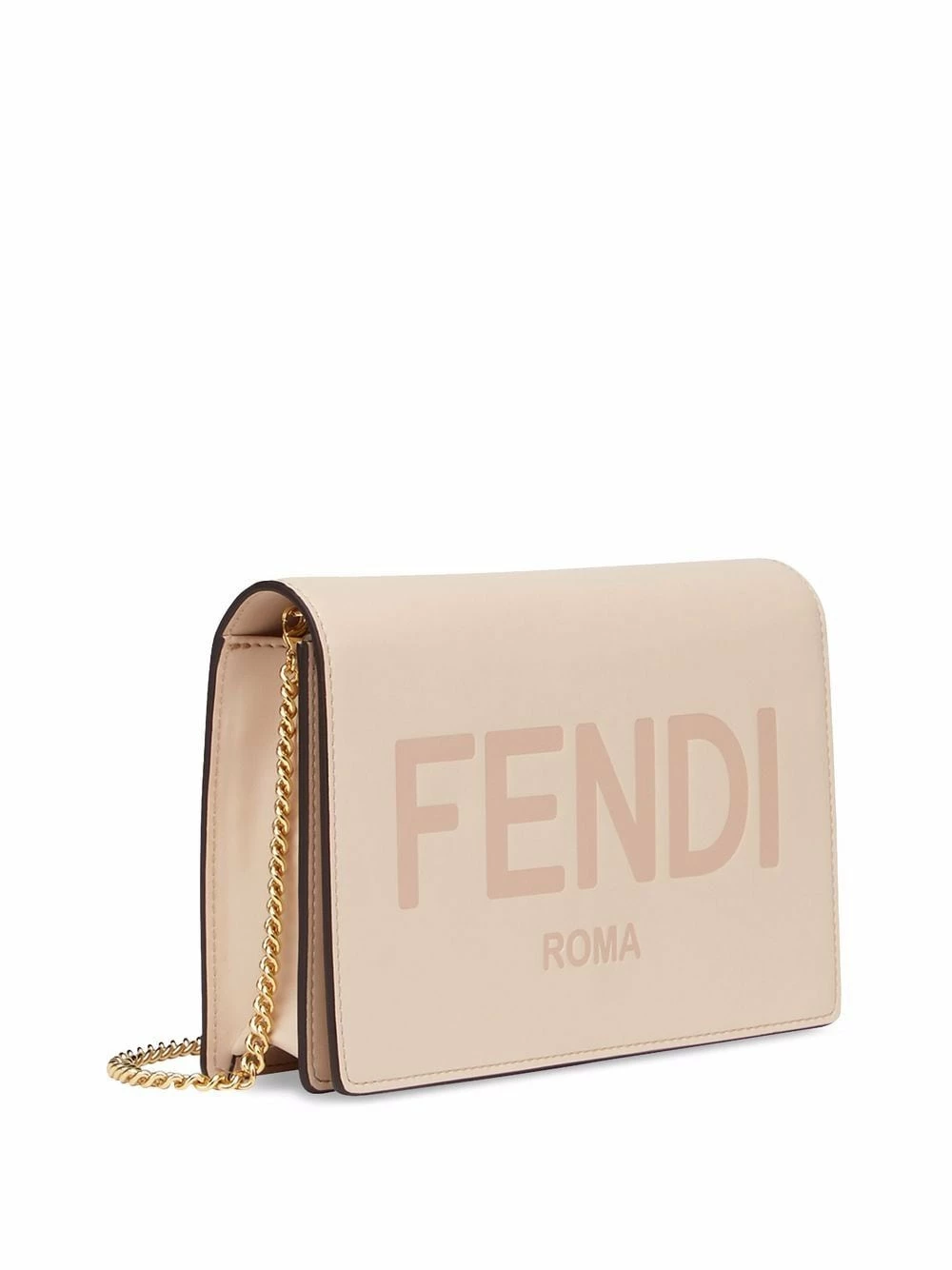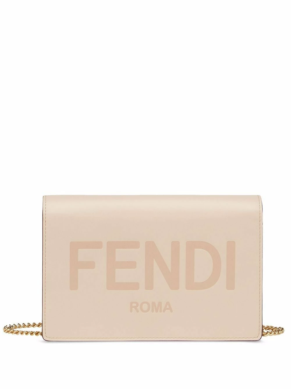 Style and function combine with this mini chain-link FENDI wallet. The FENDI ROMA logo print draws focus whilst multiple card slots and a zipped pocket add a practical touch.