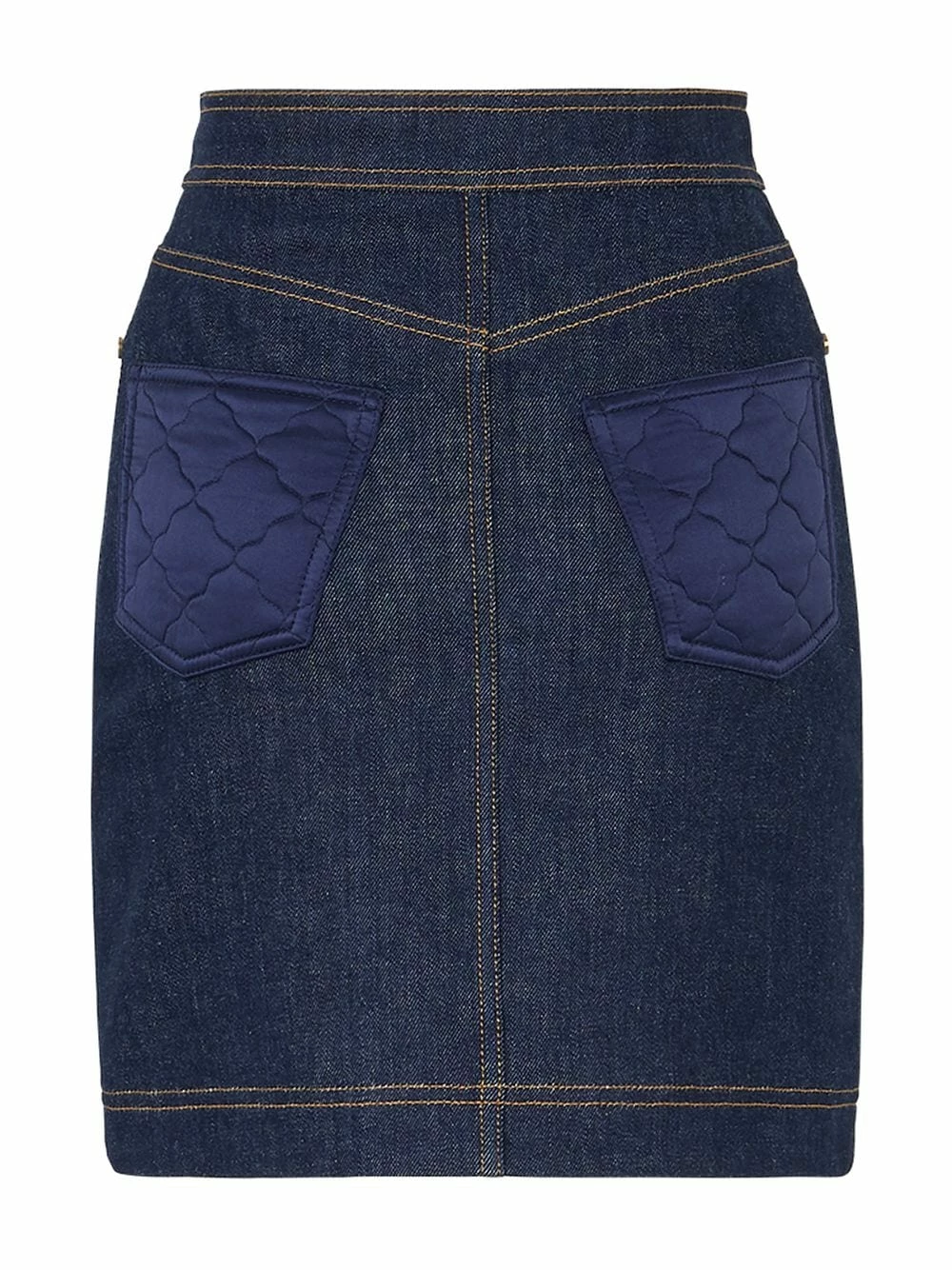 We heard somewhere that with the right denim, a girl can conquer the world. Well, if that is true, we’re going in Fendi. Meaning: we’ll be wearing this indigo-blue denim skirt while working our way to the top. Who’s joining?