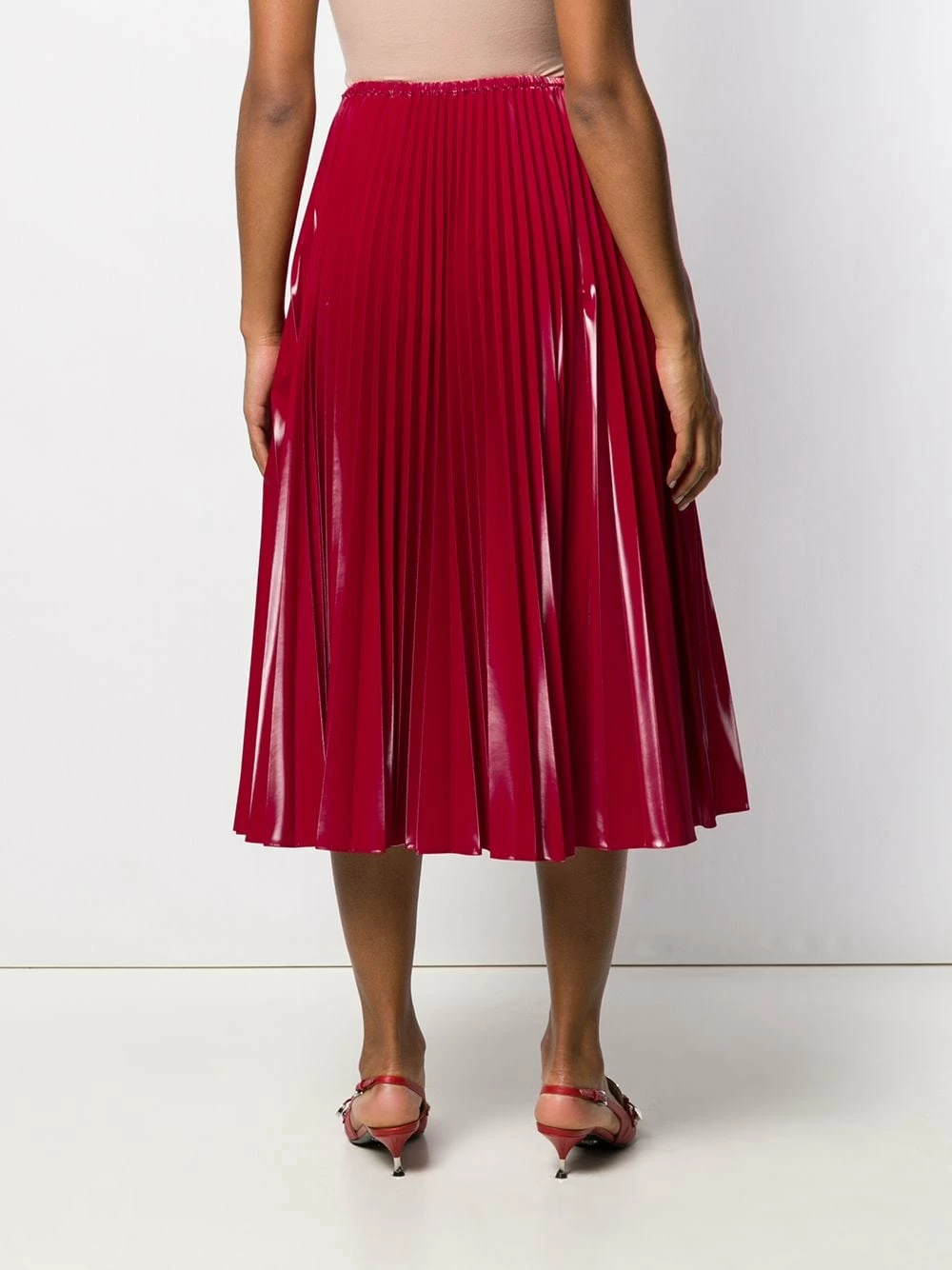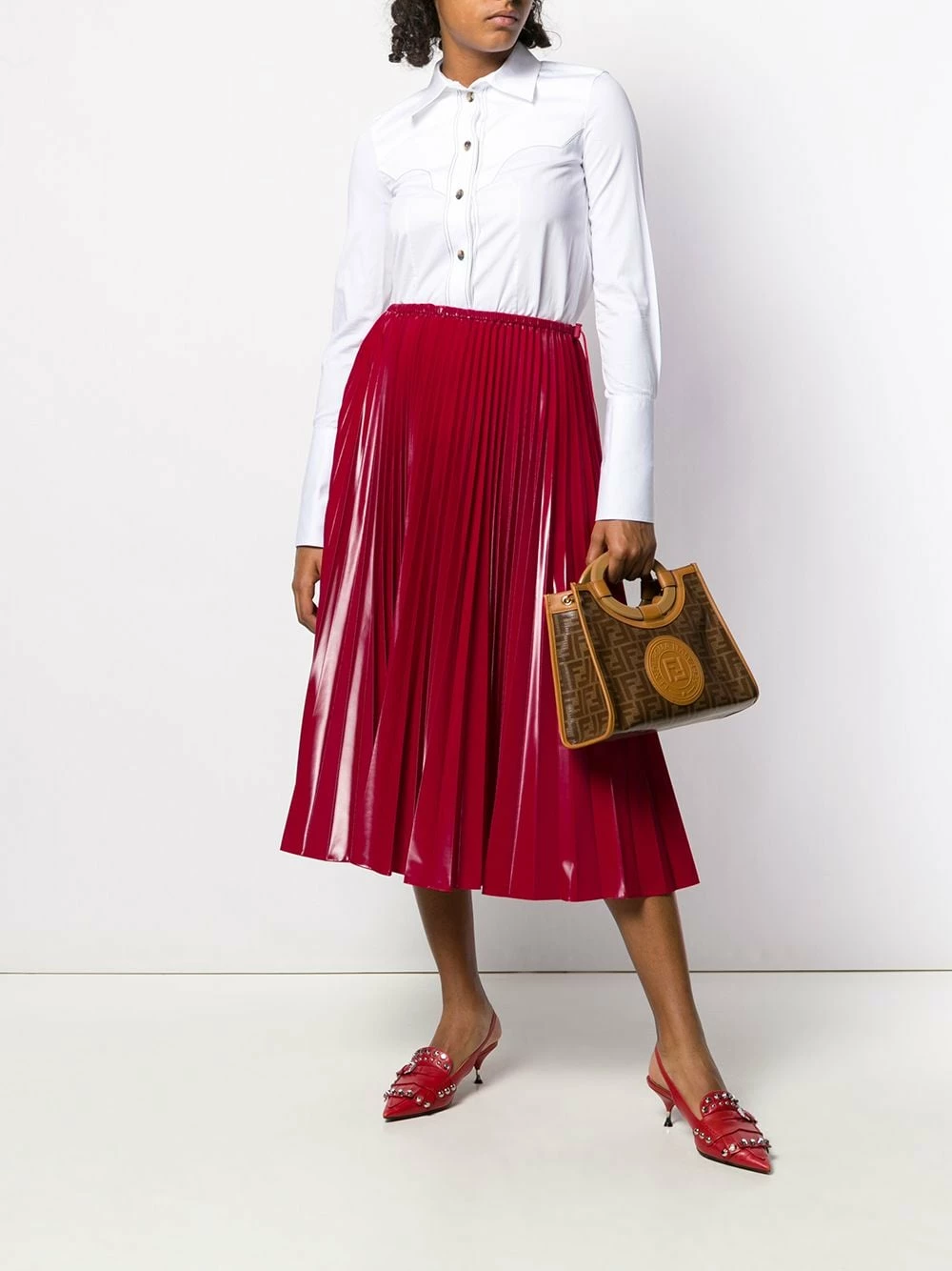 Fendi is all about sophisticated and trendsetting designs that showcase the brand’s contemporary and fashionable nature. By always offering immaculately crafted pieces with a modern twist, the brand has captured the hearts of the masses. This red pleated midi skirt features a high rise, a toggle fastening, a relaxed fit, and a mid-calf length.