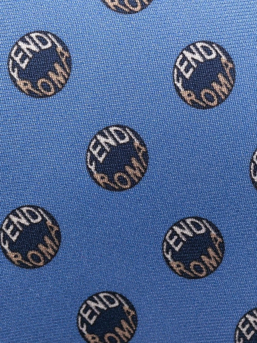 Fendi has never been reserved when it comes to presenting their logo throughout their creations. So it comes as no surprise that their light blue silk blend tie is covered with a polka dot logo pattern.