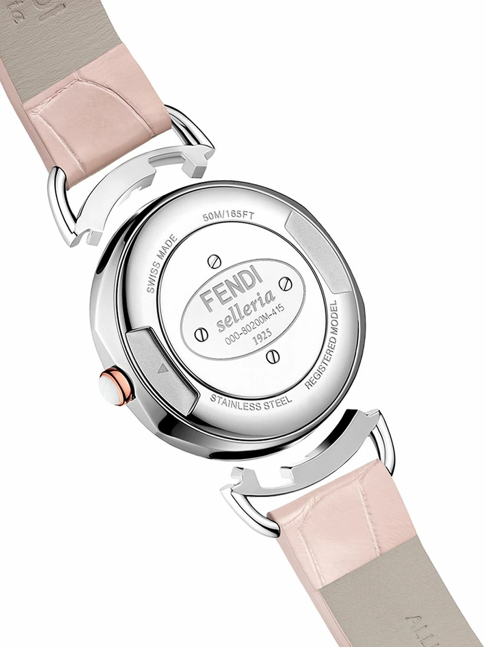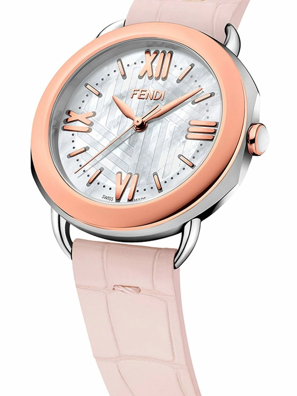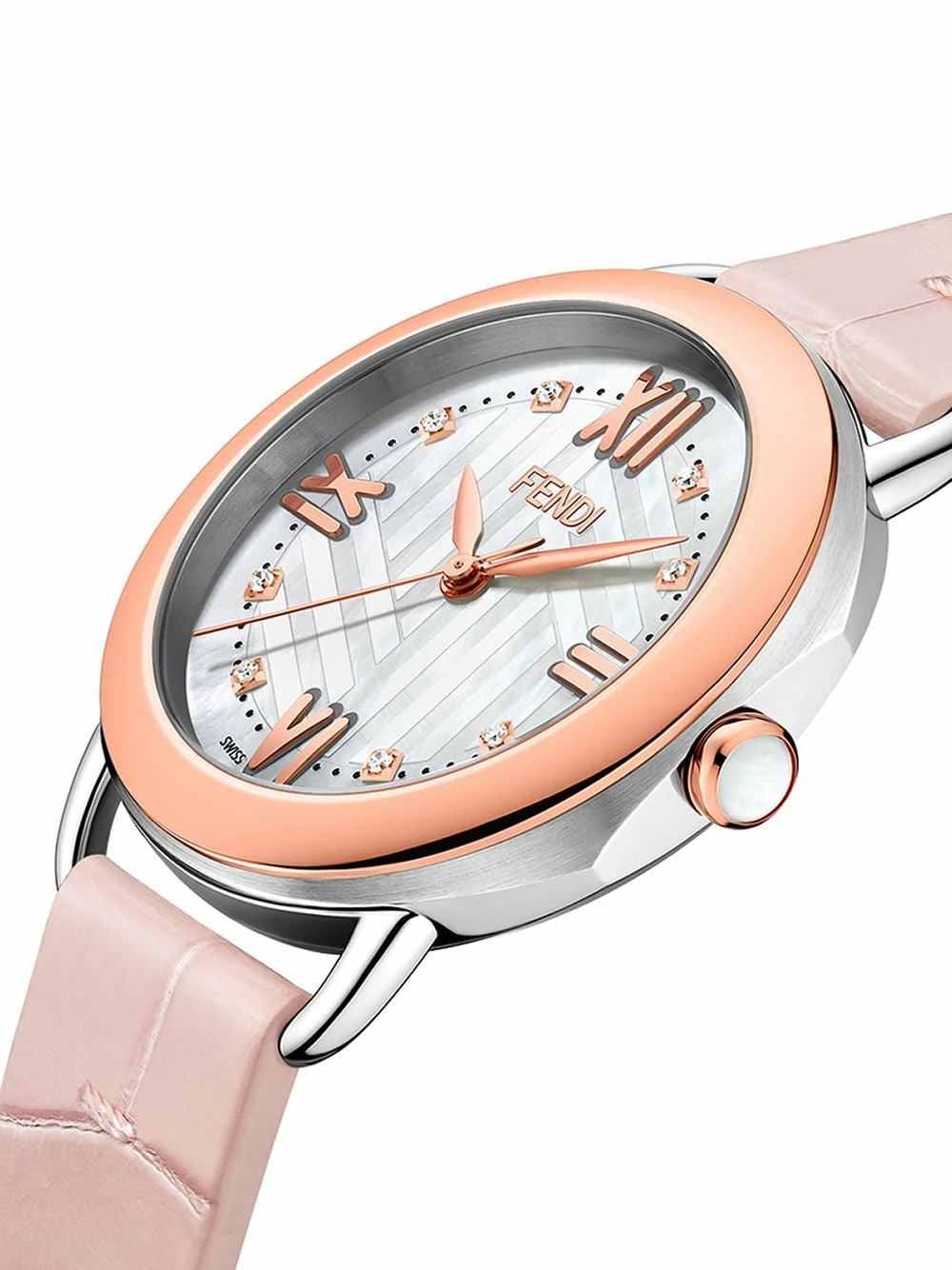 Crafted from luxury Italian calf leather, sapphire and mother of pearl, Fendi’s Selleria watch is just what you need to make punctuality your thing. The pale pink timepiece is powered by a quartz movement with a Roman Numeral dial face. The leather strap is interchangeable so you can swap depending on your mood.
