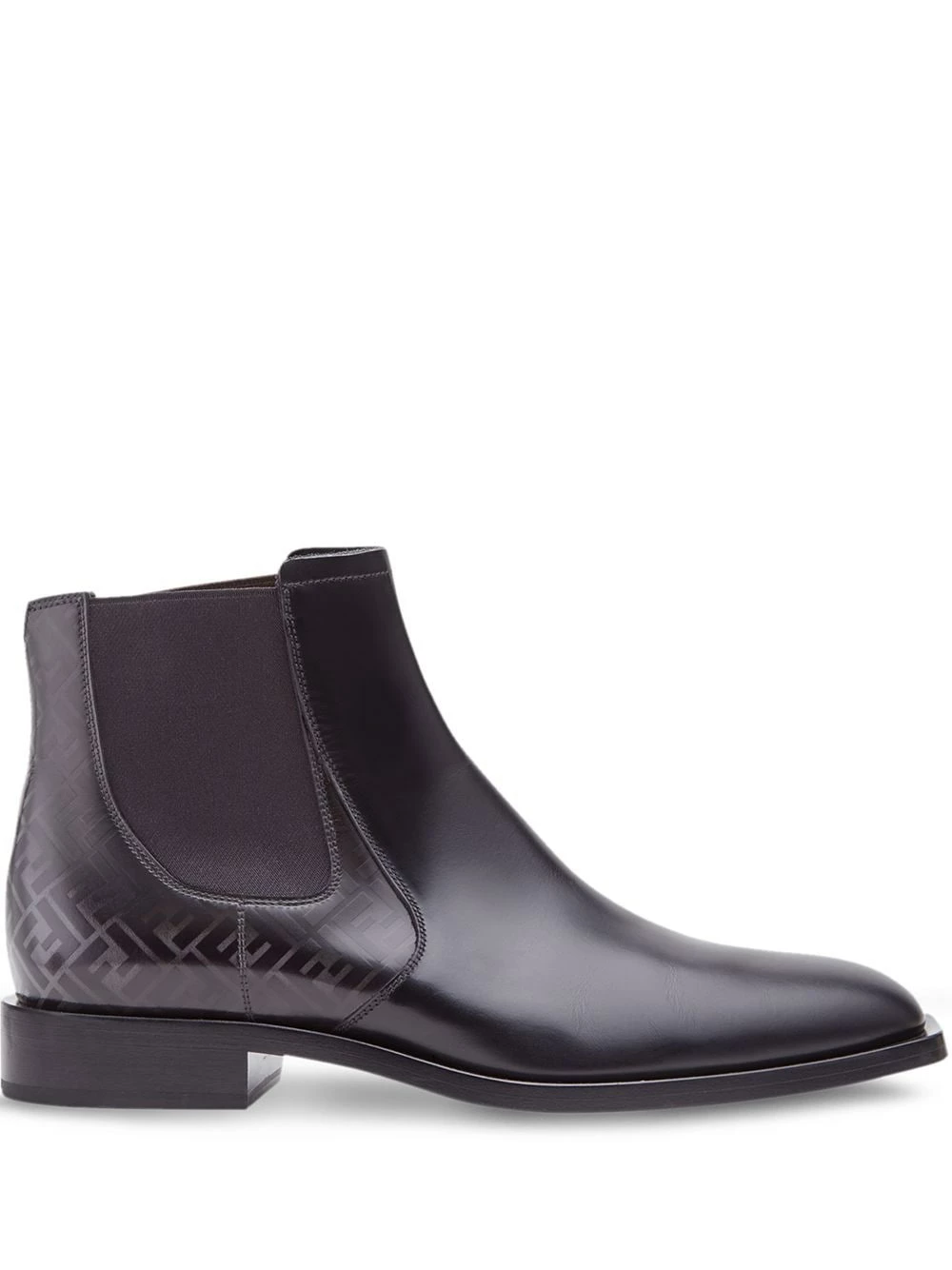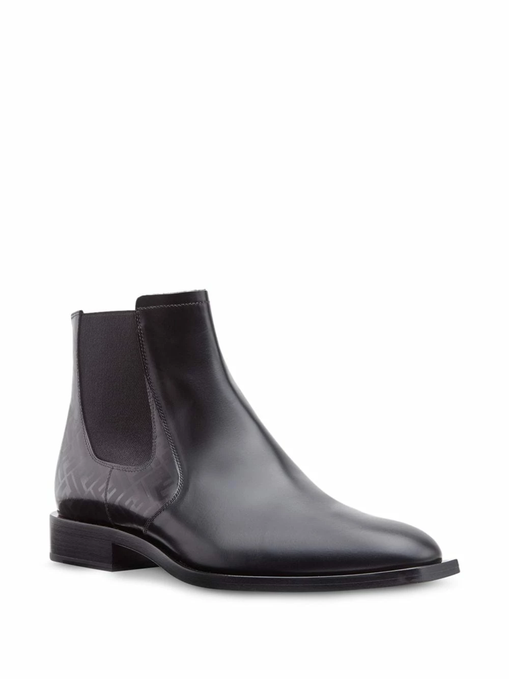 Nothing beats Fendi when it comes to dressing up with elevated style and finesse. These black and grey FF logo Chelsea boots are crafted from leather and feature an almond toe, a low block heel, elasticated side panels, an ankle length and a gradient logo to the heel.