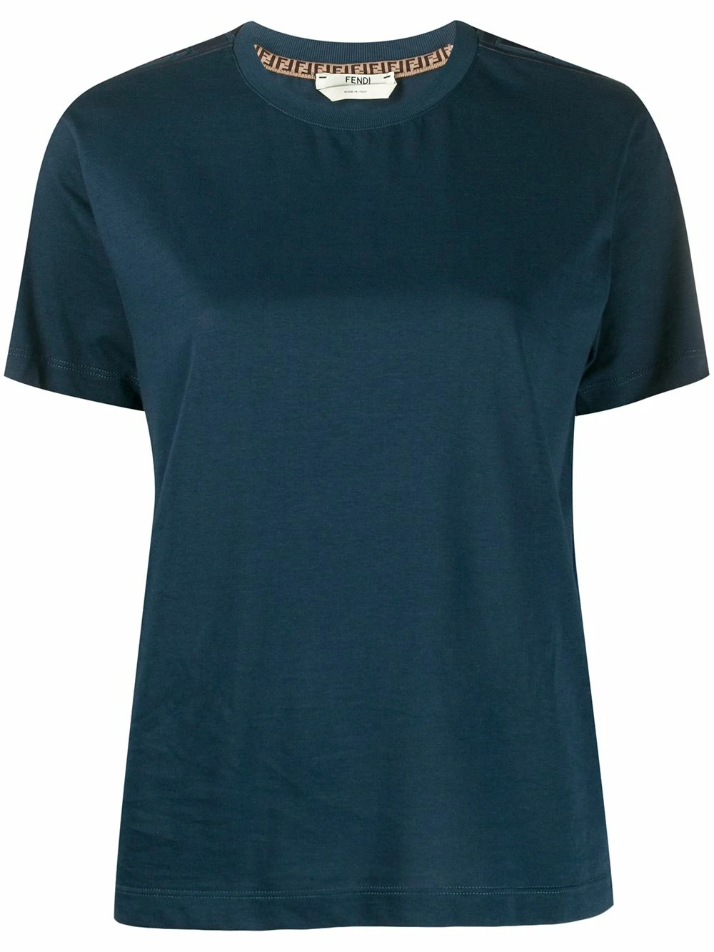 Those two iconic letters find their way into every Fendi piece and that include basic tees such as this blue cotton FF motif print T-shirt. Featuring a round neck, short sleeves, a monogram pattern and a straight fit.