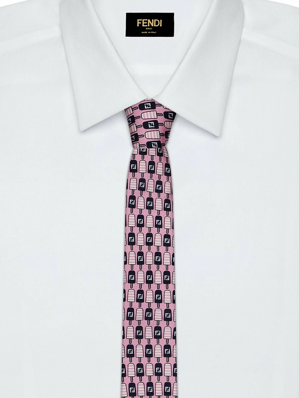 Feeling sartorially hungry for a brand new accessory? Luckily, Fendi is on the menu. In a pink hue and boasting an all-over FF popsicle pattern, this silk tie will be served as dessert. Ready to jump the main course?