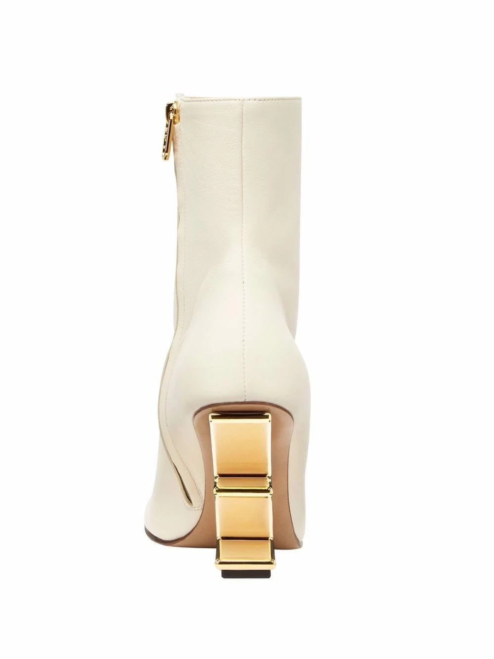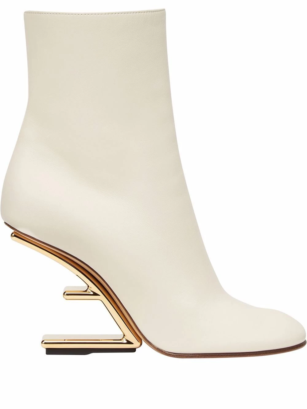 A reimagination of a shoe model from Fendi’s SS20 collection, these First boots boast an architectural construction. The ankle-length pair sit atop a gold-tone heel, sculptured to resemble an upside-down ‘F’.
