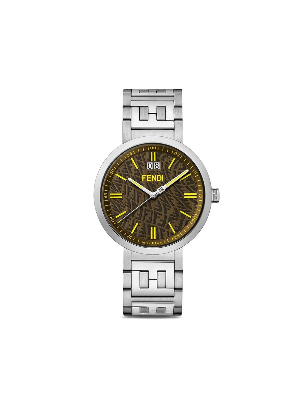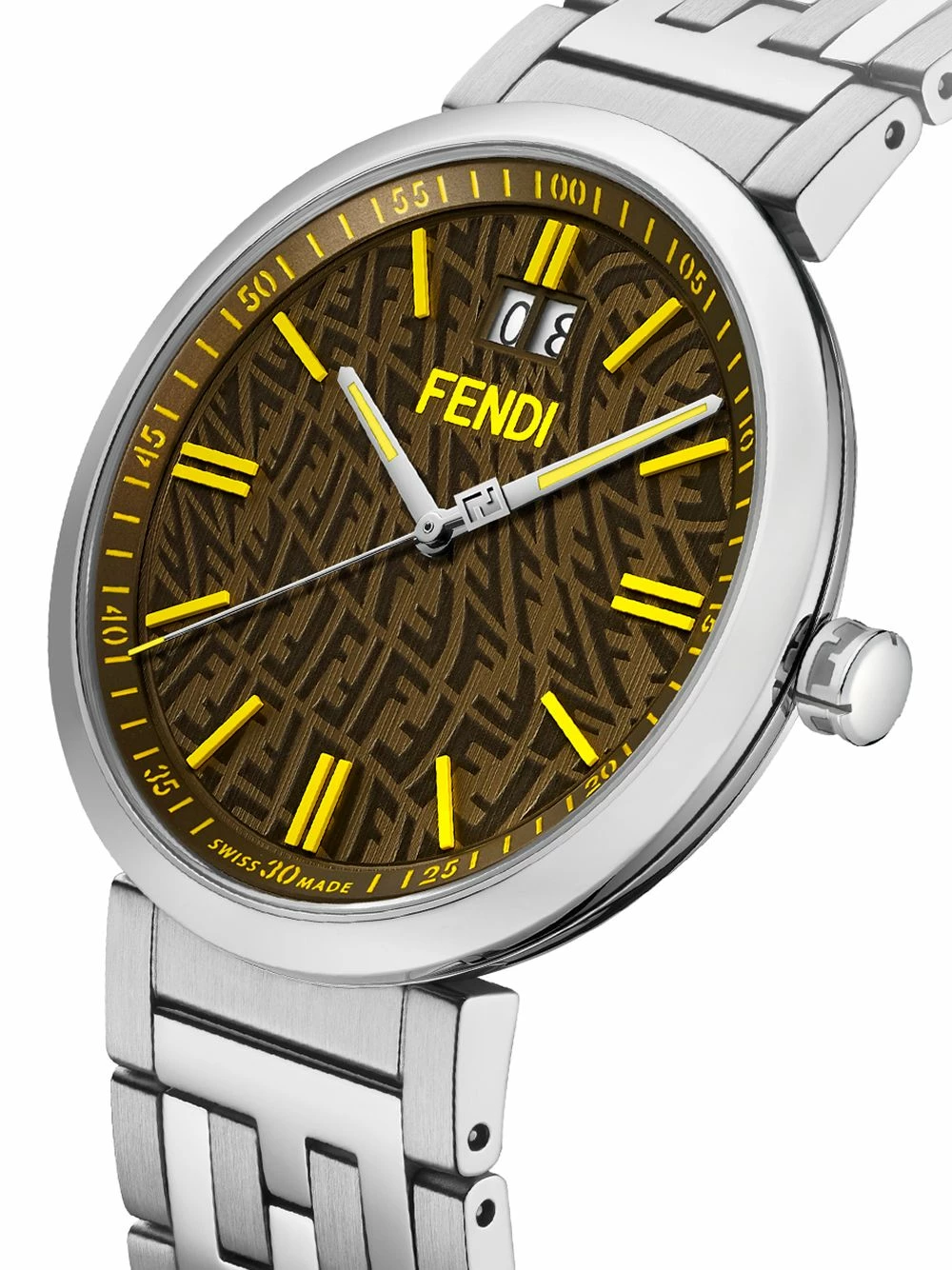 Fendi has taken a new approach to its instantly recognisable FF logo for SS21. Instead, the Italian house presents the motif in a swirling and distorted manner, called the FF Vertigo, that can be found across the dial of this Forever Vertigo 39mm.Β