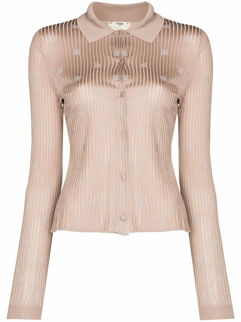 Italian-made, Fendi’s cardigan is subtly detailed with the brand’s FF logo motif in a decorative cursive throughout. Designed with all-over ribbing, this button-front piece boasts a spread collar and curved hemline.