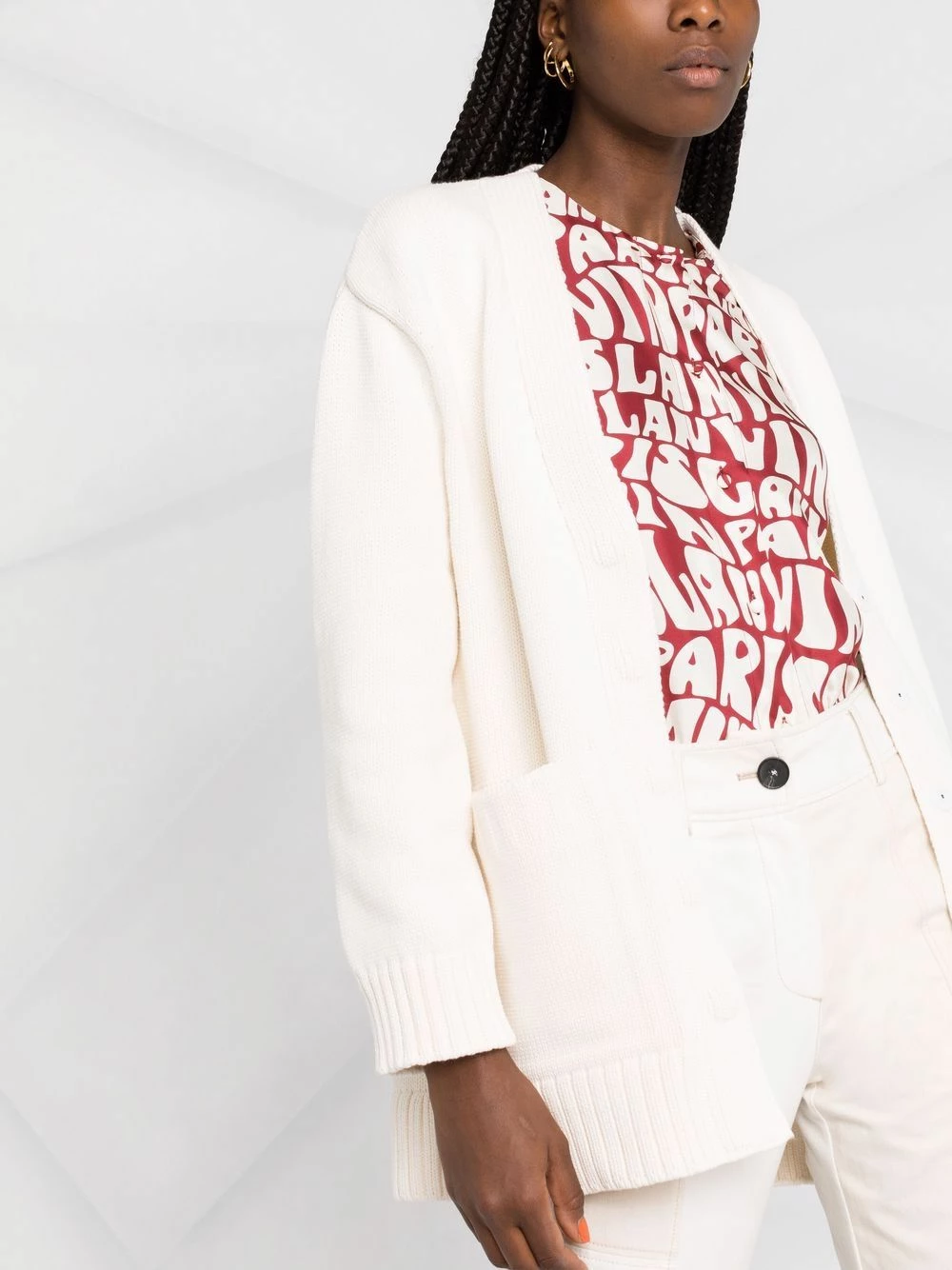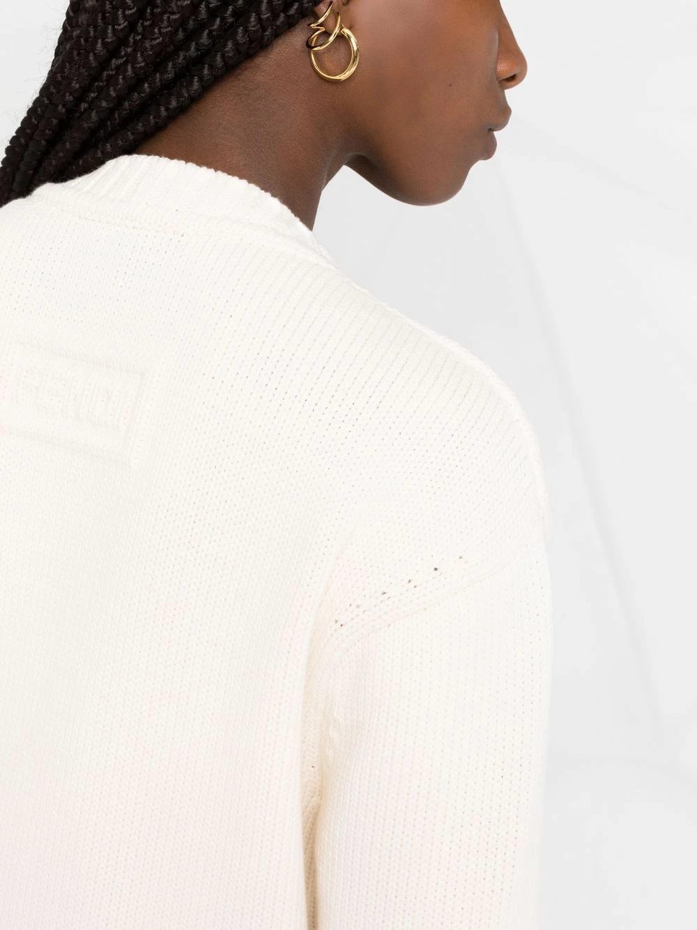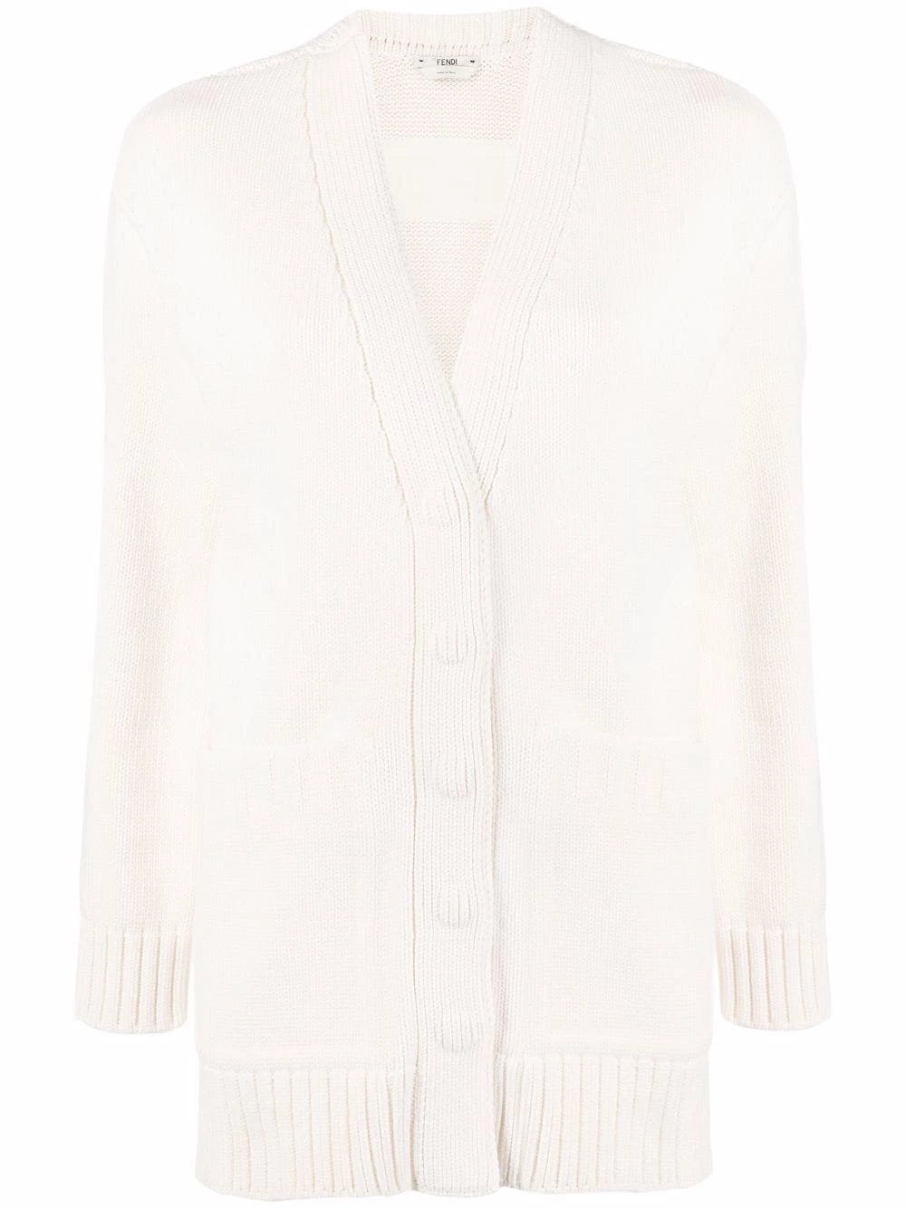 In a subtle take on branding, Fendi presents this white-tone cardigan, discreetly embossed with a rear logo. A tonal design, this piece has been knitted from a soft cotton blend and cut in a relaxed fit that adds to the laid-back feel.