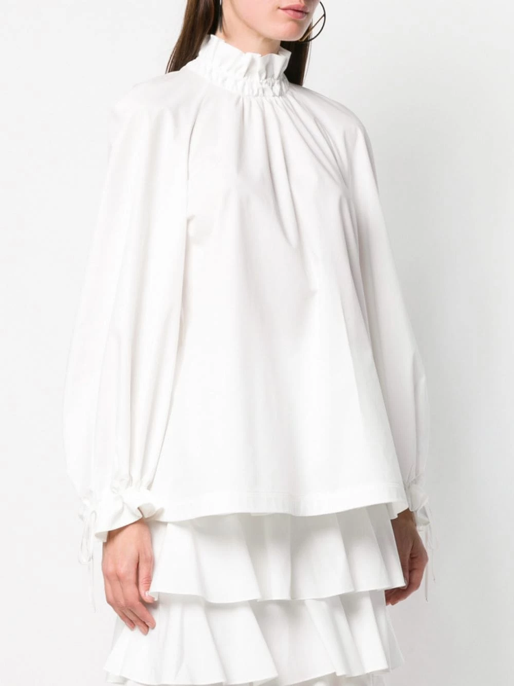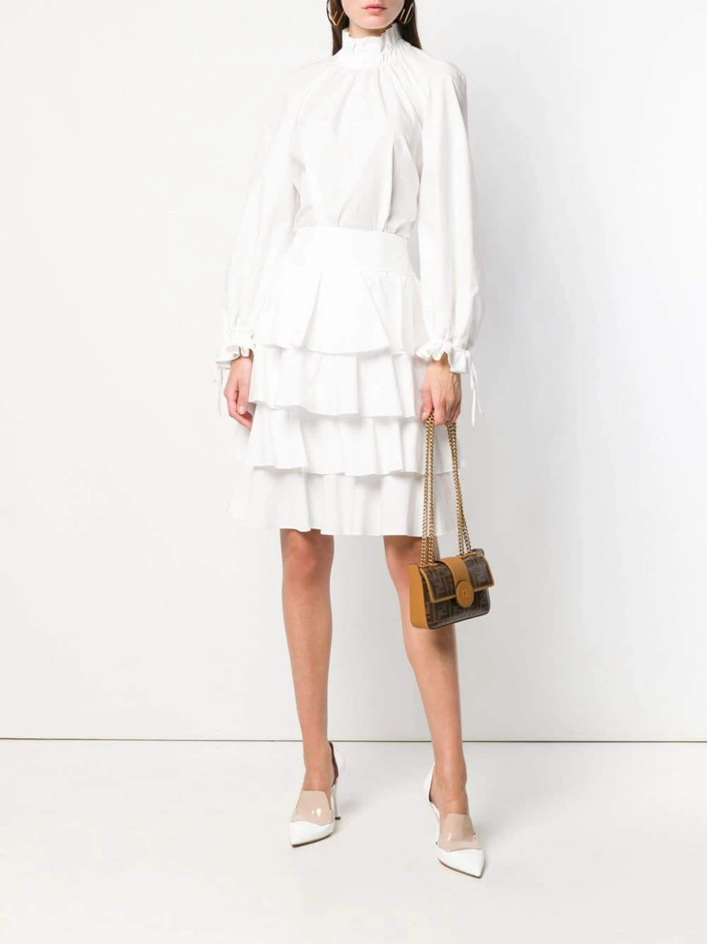 Originally a fur and leather supplier, Fendi is in the know when it comes to luxe fabrics and premium construction. Expert artisan craftsmanship runs through the brandβs veins. Made from cotton, this white dress has a ruched neckline, long sleeves and a layered design.