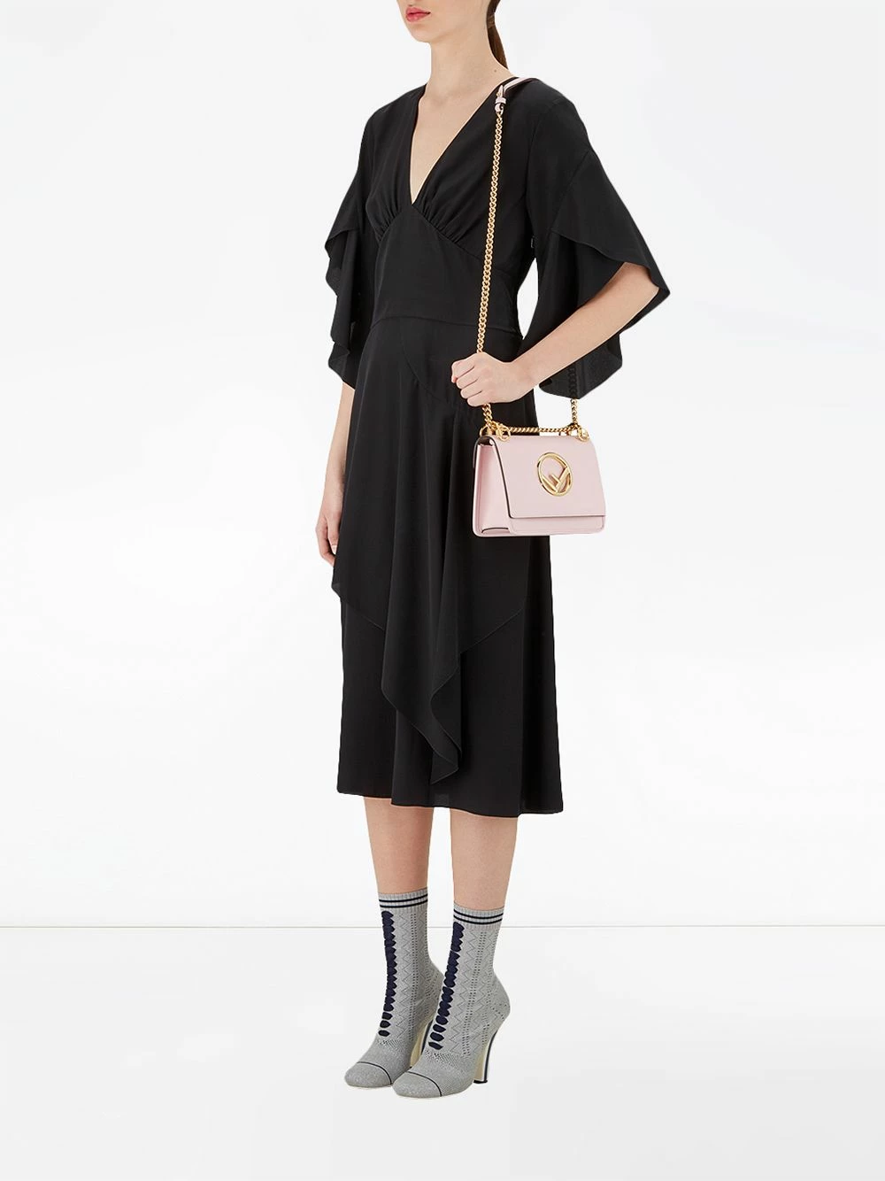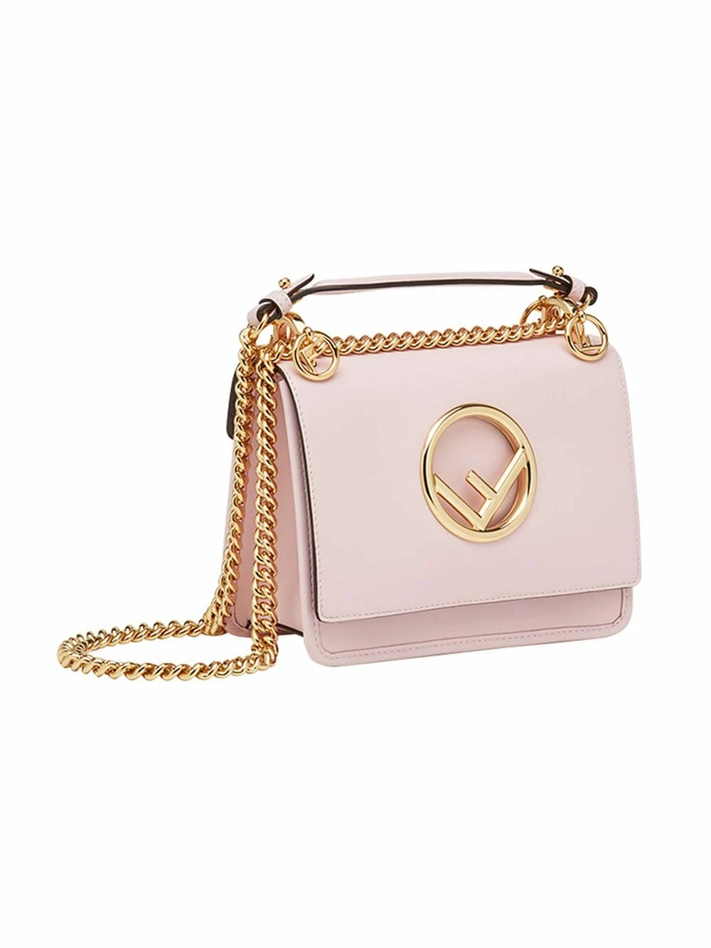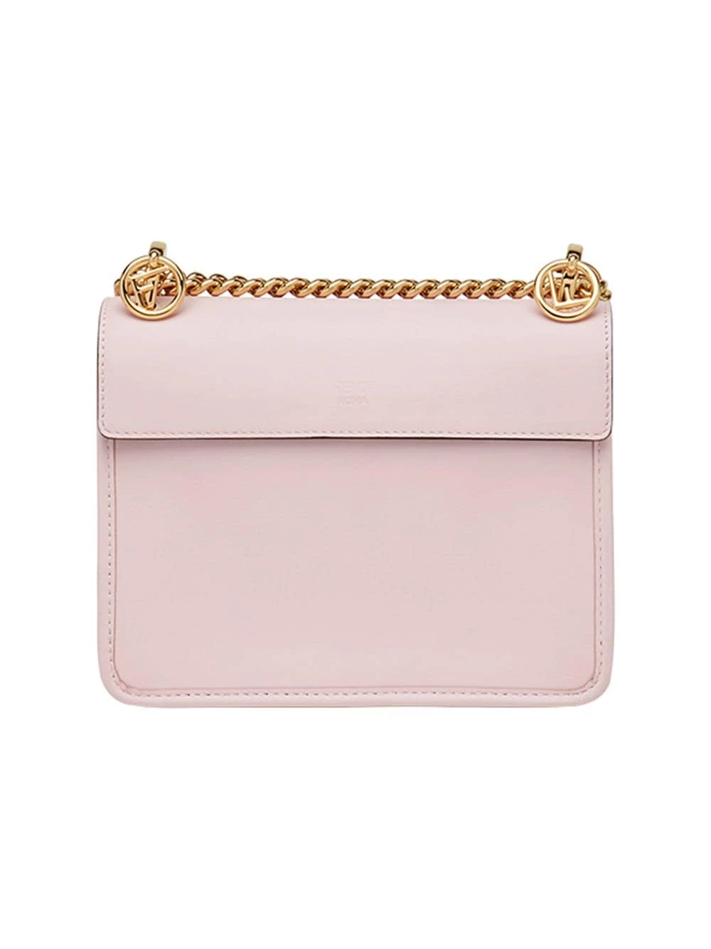 With over ninety years of design under the belt of the Roman maison, a Fendi handbag is a staple of any discerning lover of minimalism, punctuated with a blithe spirit. This Pink calf leather small Kan I F bag from Fendi features a foldover top, a main internal compartment, a chain and leather strap and a gold-tone logo plaque.