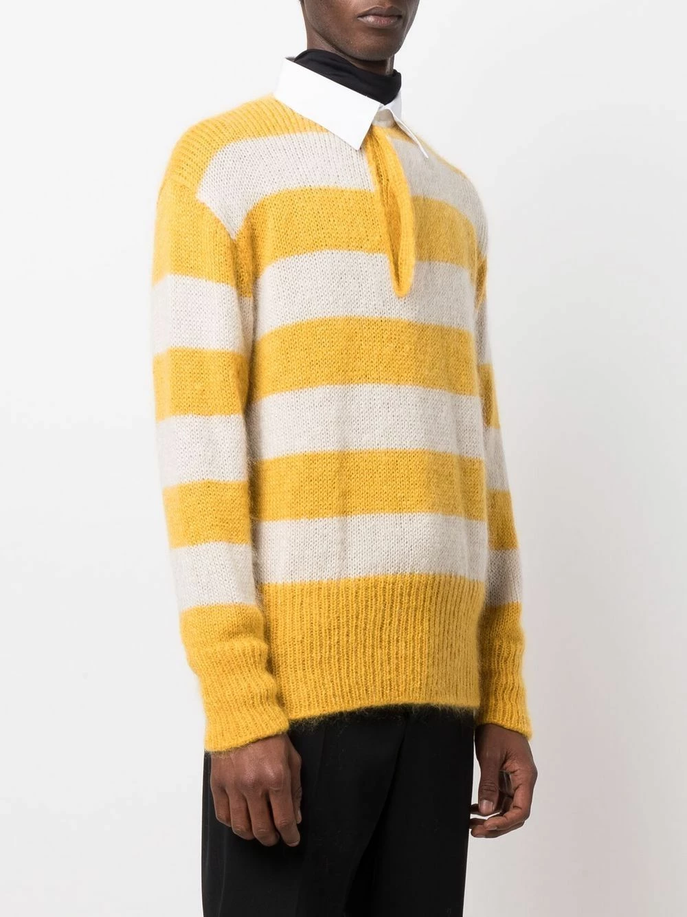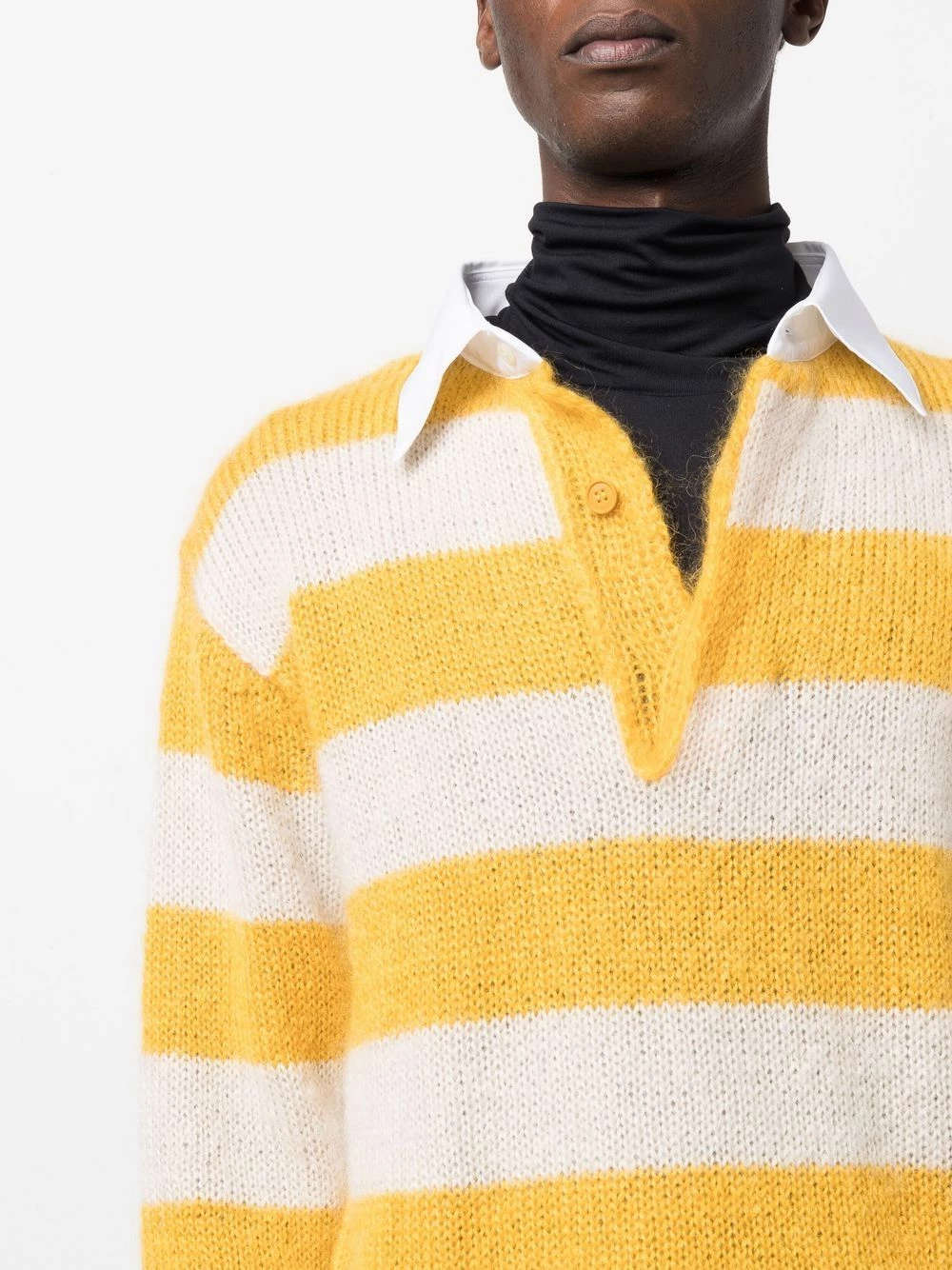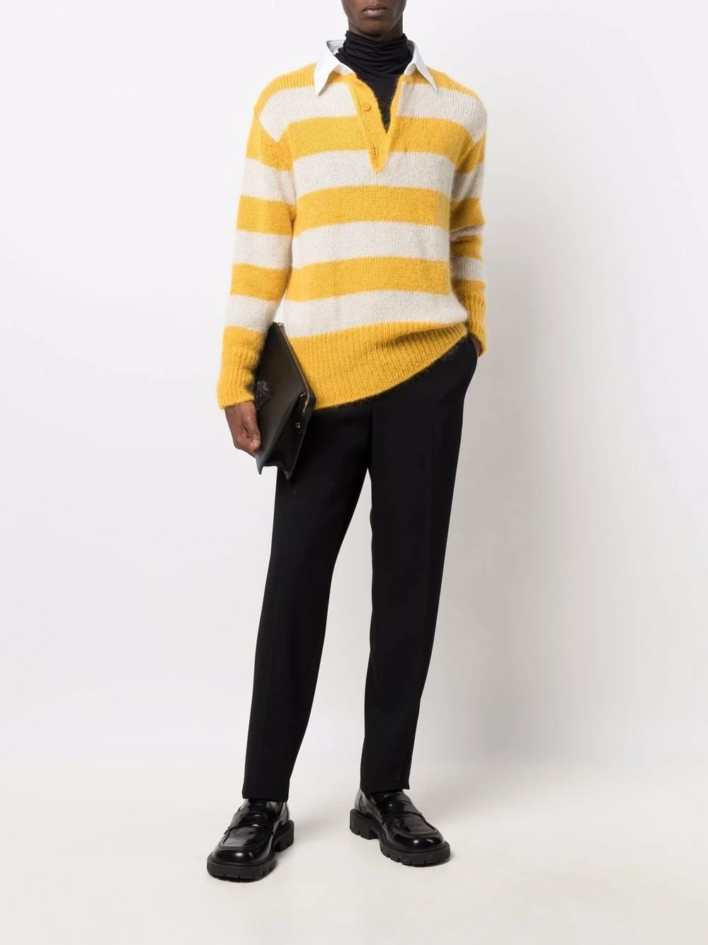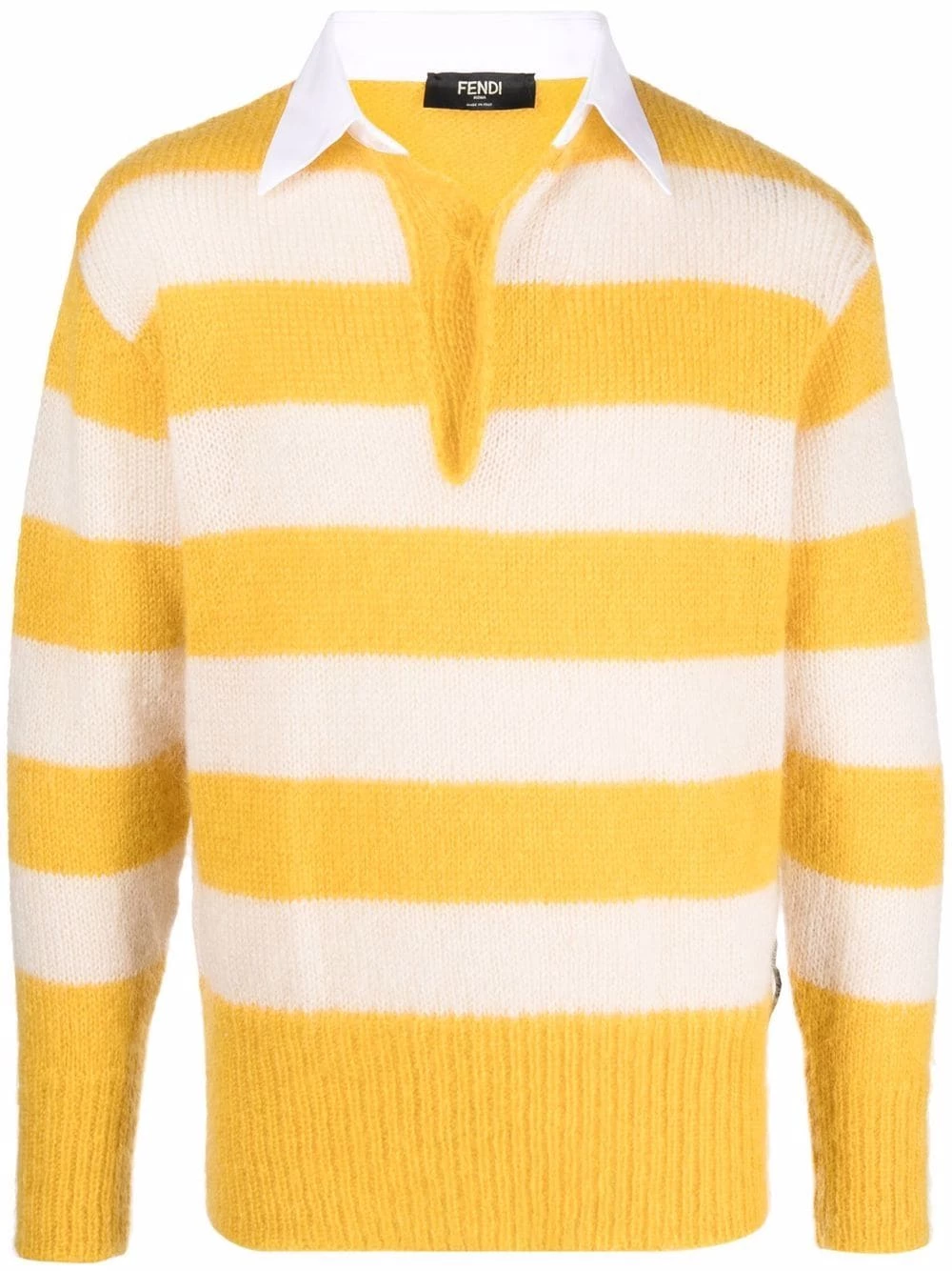 Rome-born fashion house Fendi may have come a long way since its 1925 conception, but its craftsmanship remains unrivalled. Crafted from a mohair blend, this knitted polo shirt is decorated with horizontal stripes in yellow and ivory hues.