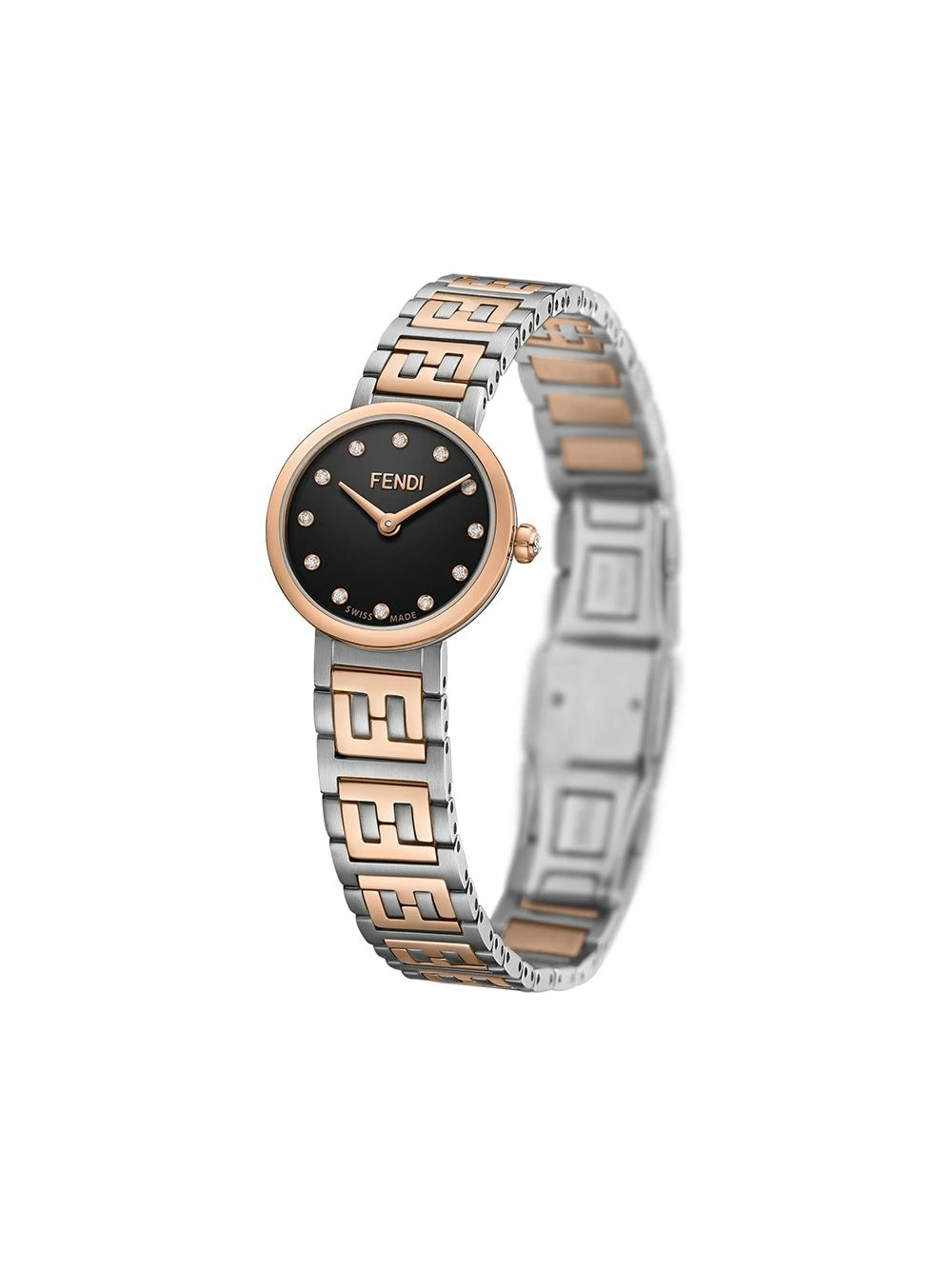 Time is the ultimate luxury – right after a Fendi watch, of course. This gold and silver-tone steel Forever Fendi monogram watch might tell you the time, but its elegance is timeless. Count down the hours until you get it makes its way to you. Featuring a stainless steel case, a monogram pattern, a round face, a quartz movement, a buckle fastening and 0,05 cts diamond embellishments.