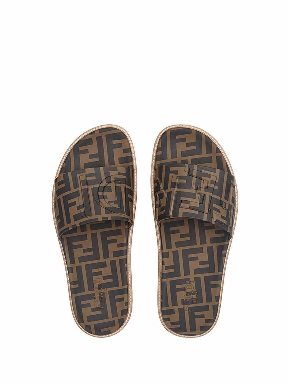 Fendi is the only F-word worth knowing. Spread the word thanks to these brown FF slides. You’ll swear by them. Featuring a monogram print, an embossed detail, an open toe and a ridged rubber sole.