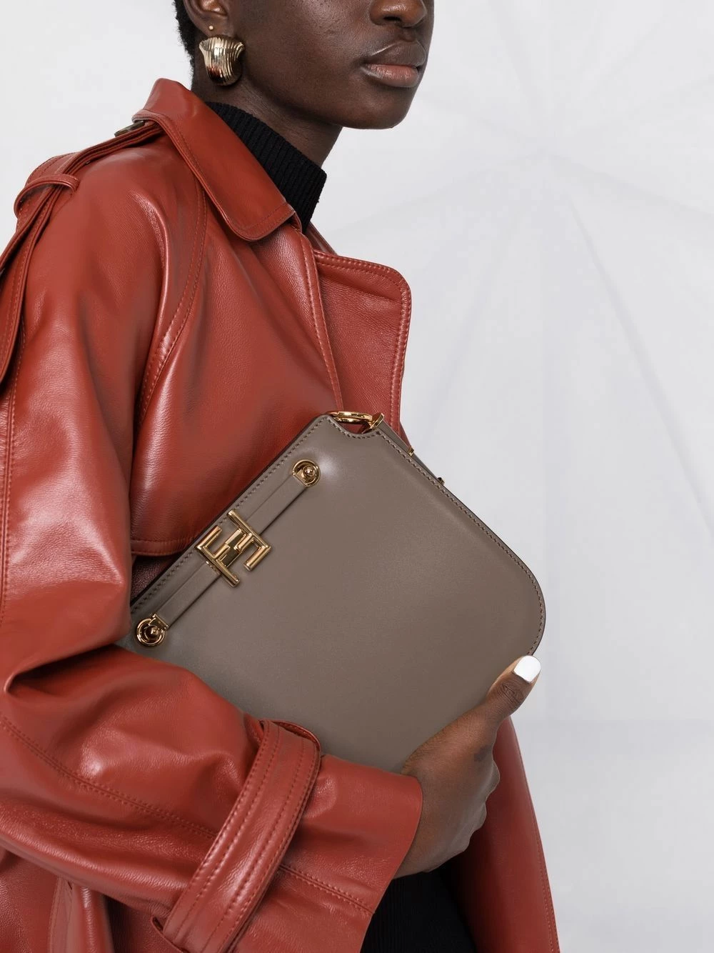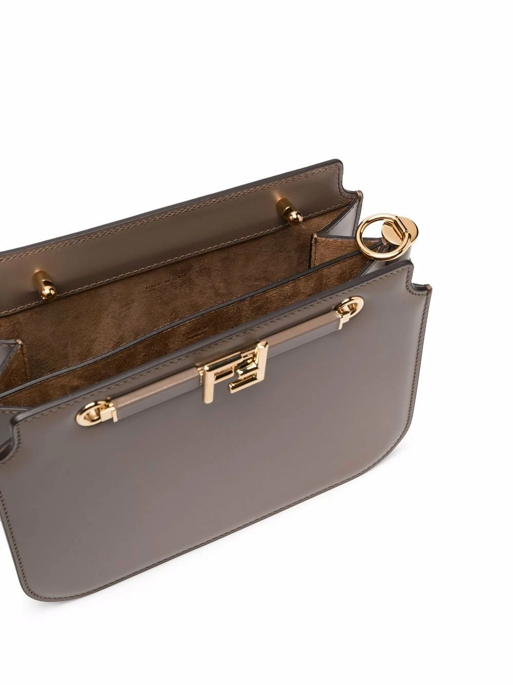 Fendi is an Italian luxury fashion house that stands for quality, tradition, and creativity. Made of brown leather and embellished with a metal FF clasp, this shoulder bag is a perfect example of the brand’s impeccable style.
