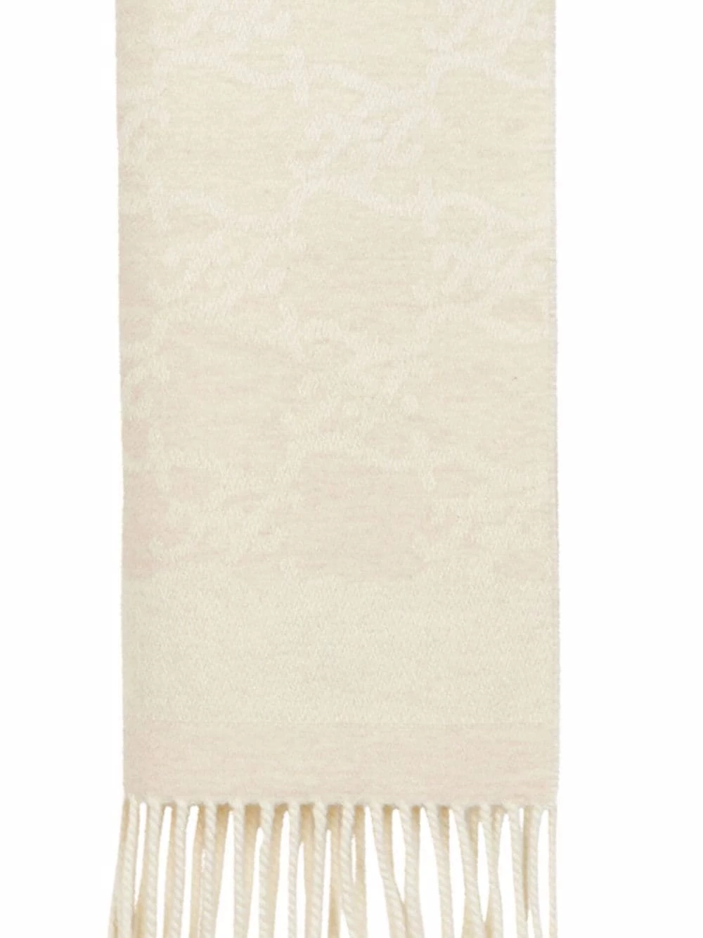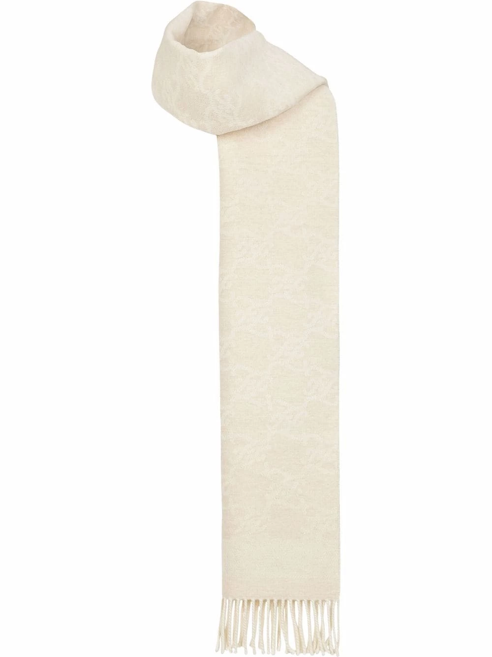 Detailed with a tonal logo jacquard, this wool-cashmere scarf from Fendi is elevated by the subtle Karligraphy motif that decorates one side.