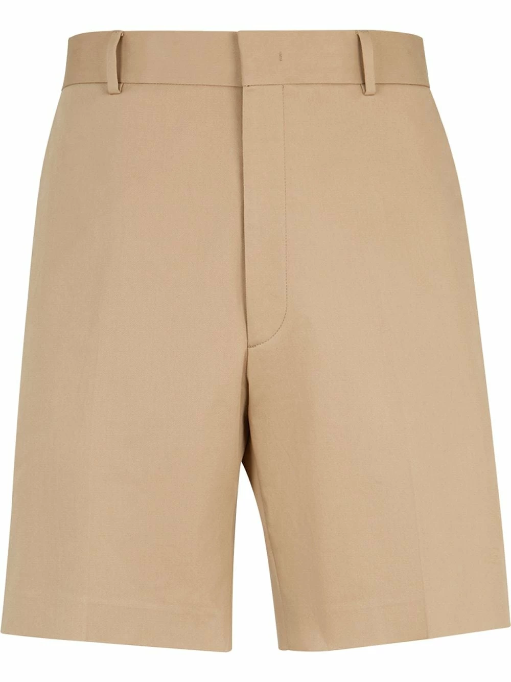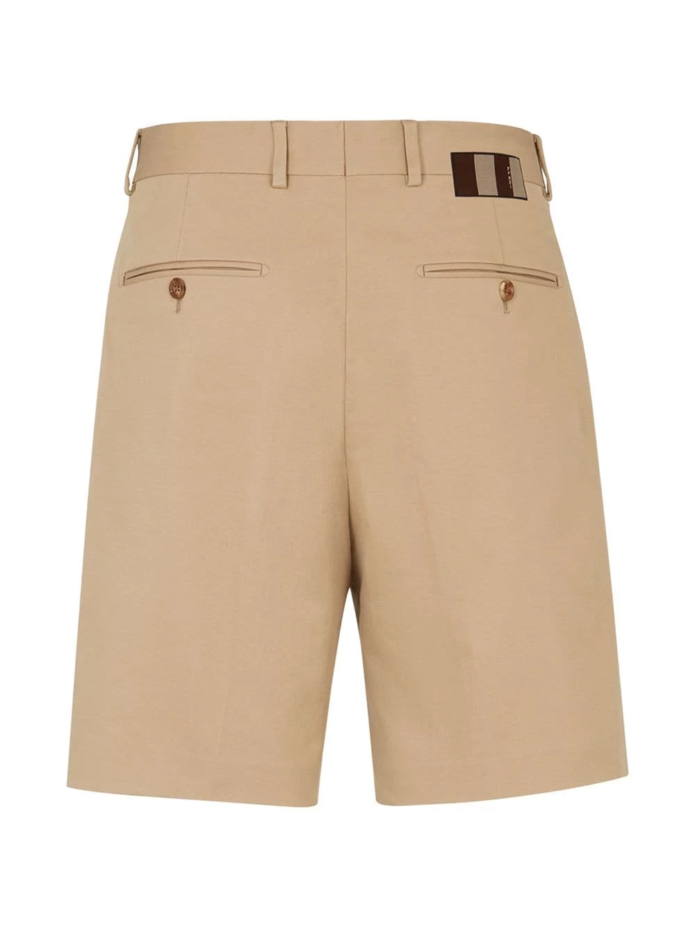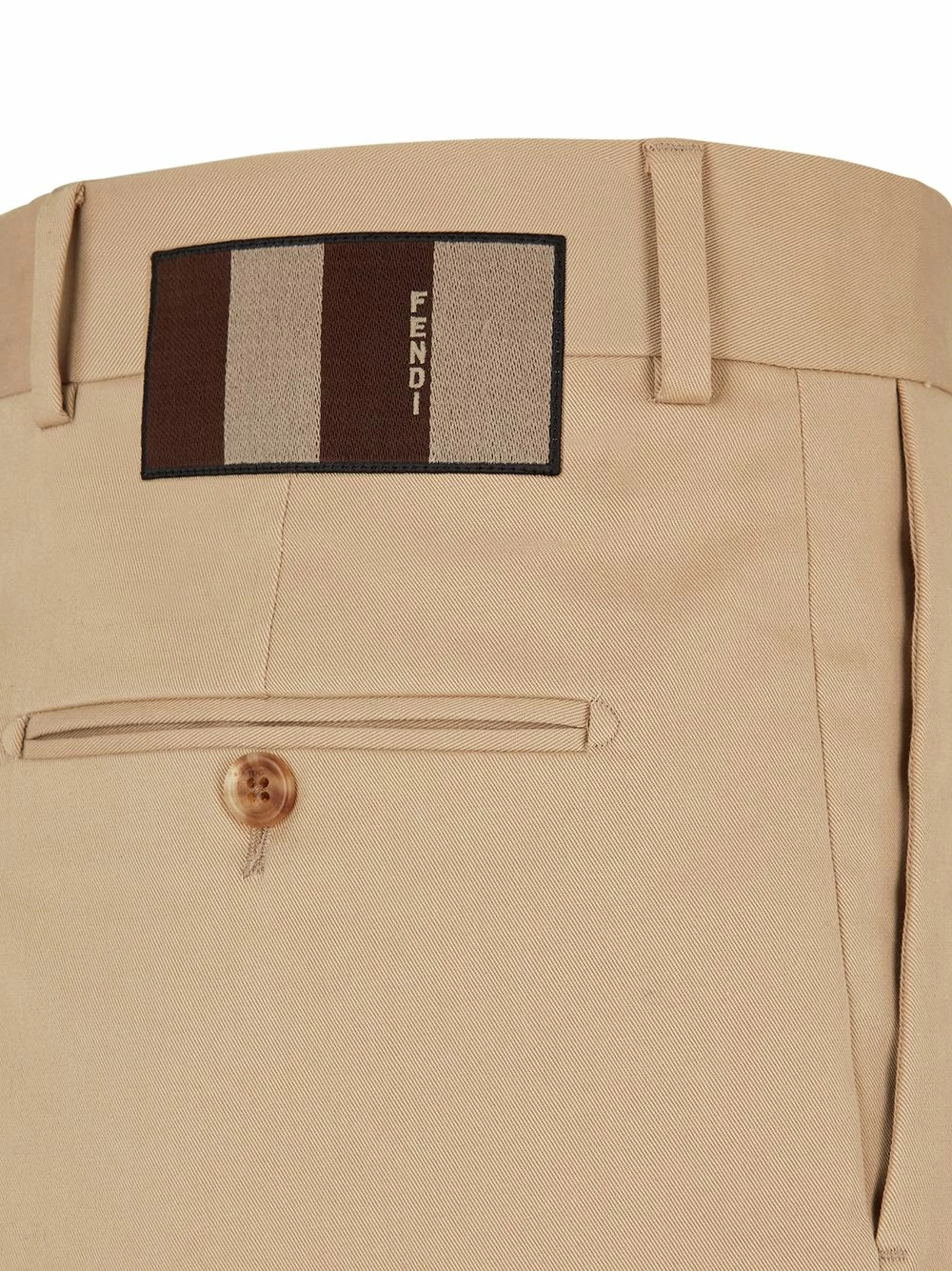 Beige cotton-blend logo-patch Bermuda shorts from FENDI featuring belt loops, concealed front fastening, logo patch to the rear, two rear welt pockets and straight leg.