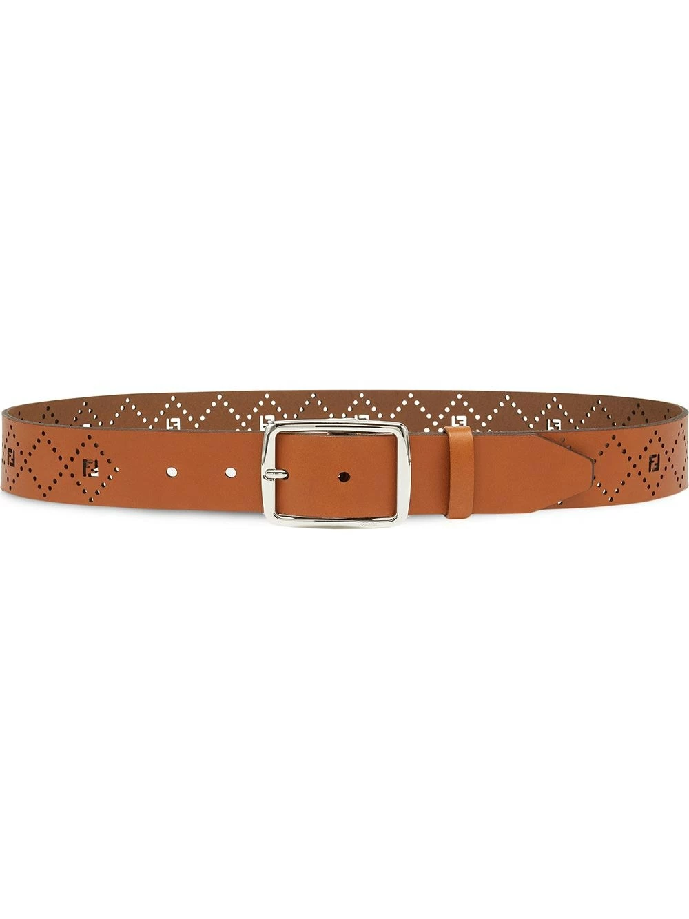 Keep your look tight with this Fendi belt. With a perforated design and a signature FF motif, this accessory will make a perfect finishing touch to your ensembles. Buckle up and enjoy.