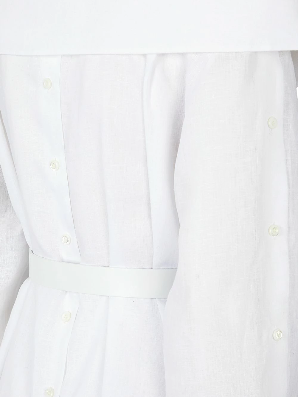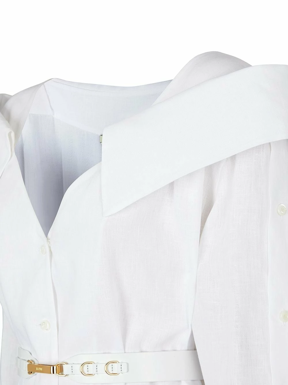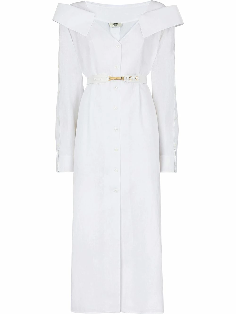 Update your shirting with Fendi. This shirt-style linen dress is tempered with a belt, accented with gold-tone hardware. It’s a newfound spin on a classic.