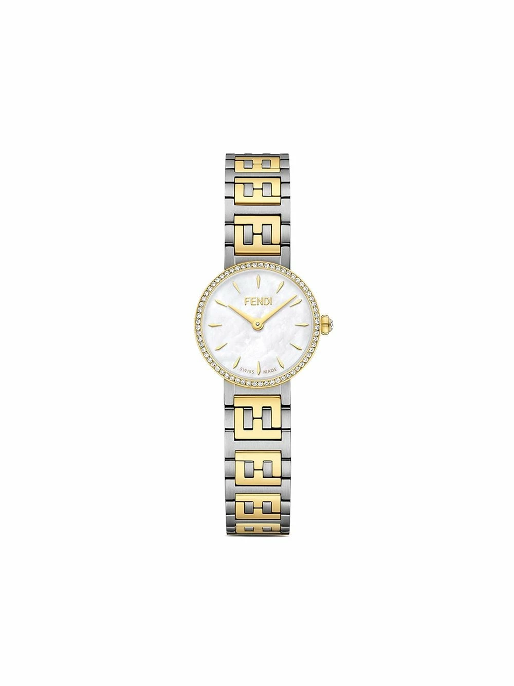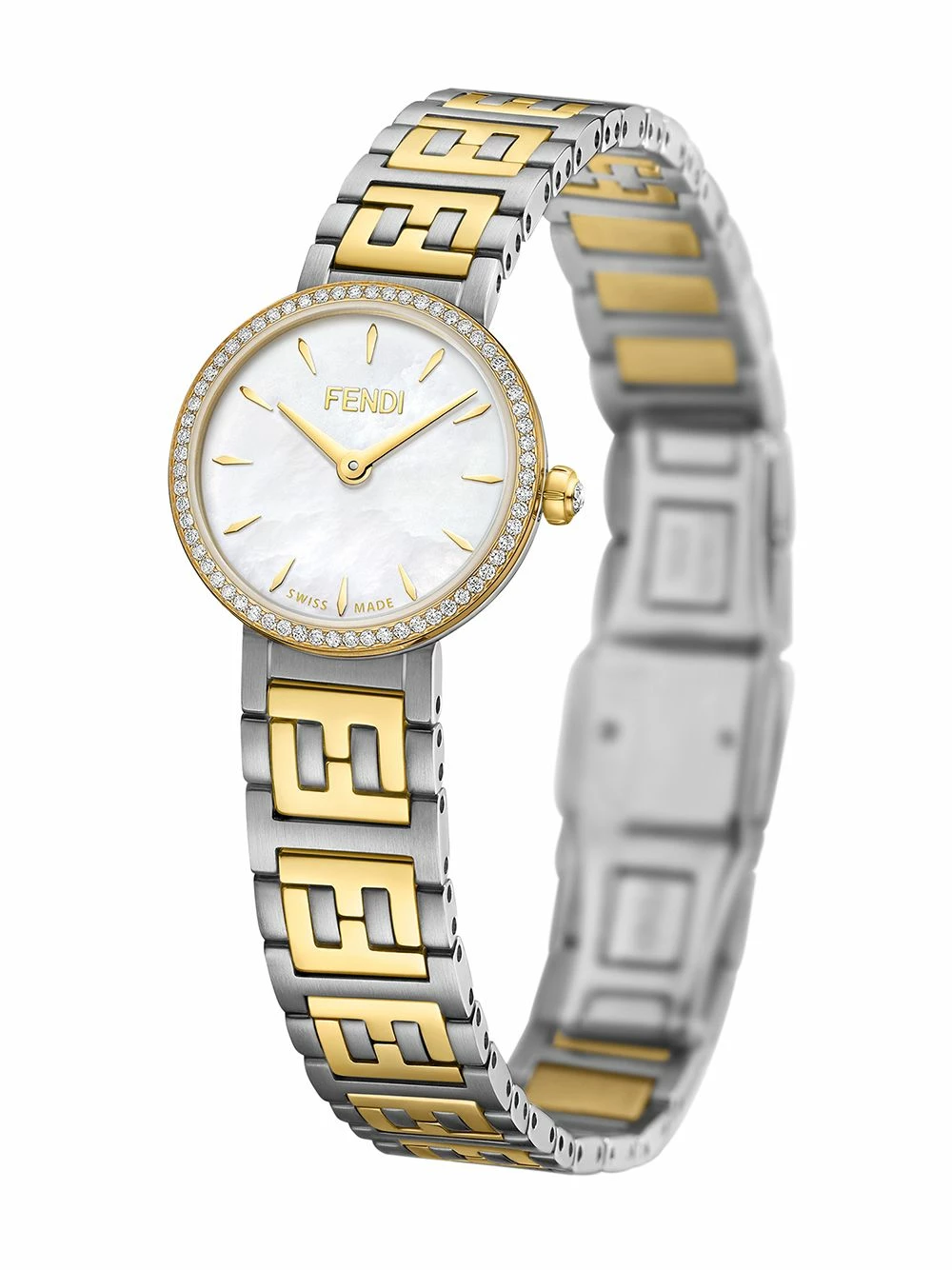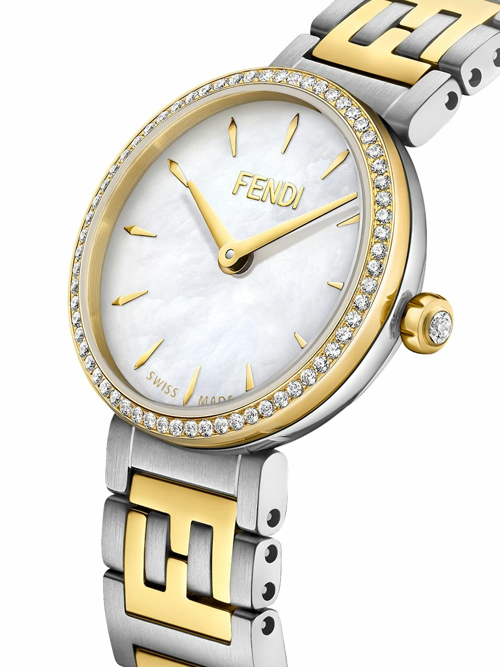 With Fendi in mind, elegance is forever and what better way to display than with this Forever Fendi 29mm. Crafted from polished stainless steel in a gold-tone hue with a mother of pearl dial, the sleek timepiece a true test of time.