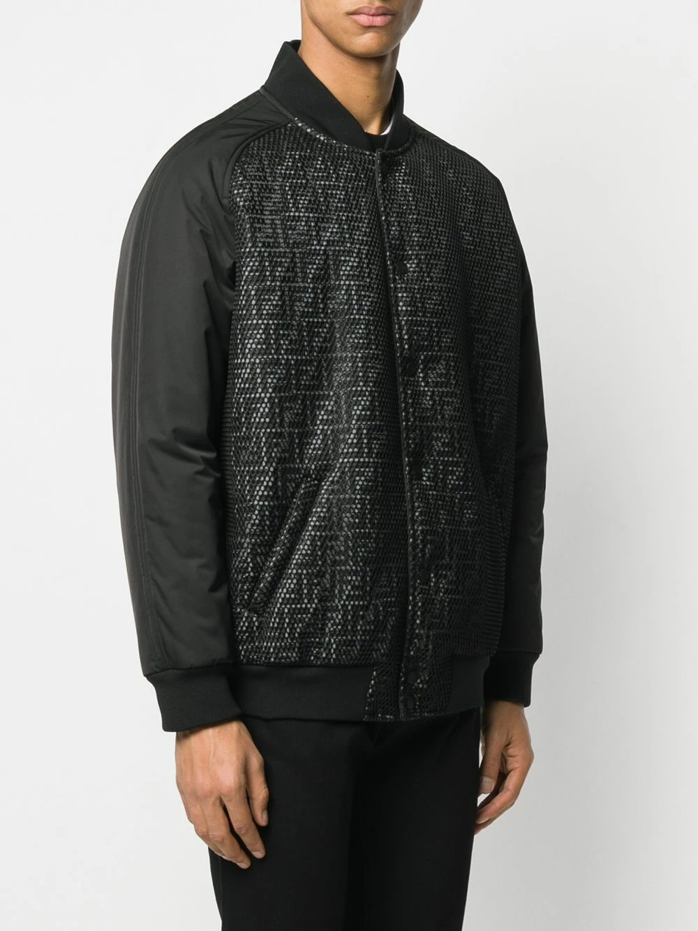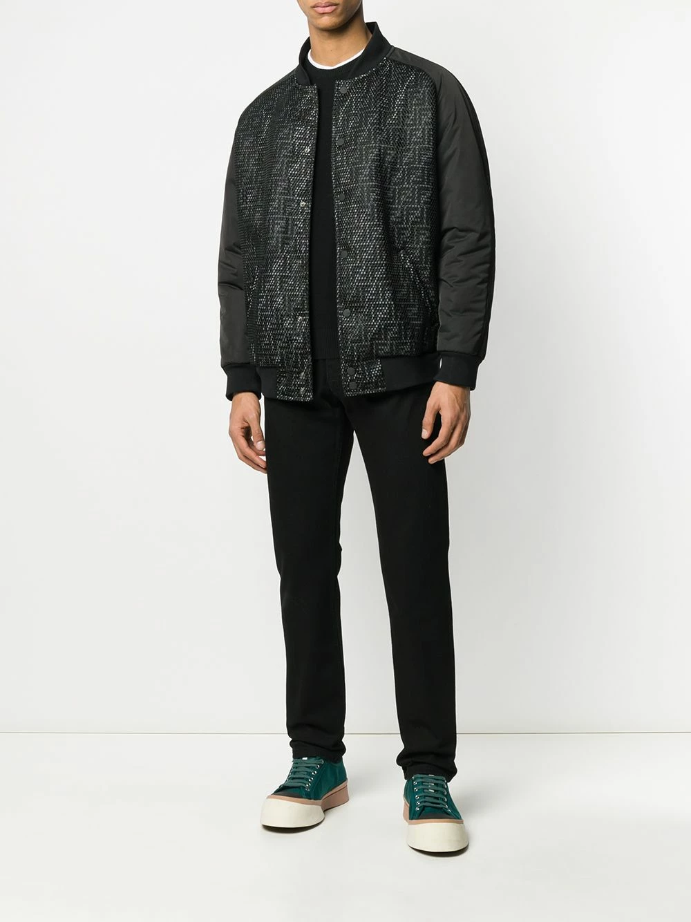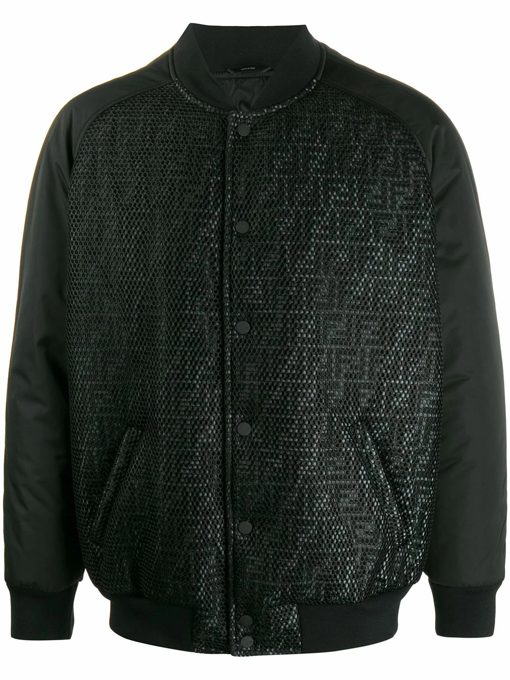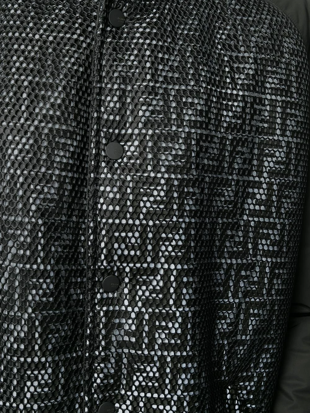If there’s one jacket that will never be out of style it is definitely the bomber jacket and no matter the season you will always use it! This FF reflective motif bomber jacket from Fendi is one of the coolest that you will see around with its reflective technology. Dare to use it! Featuring a ribbed collar, a press stud fastening, long sleeves, mesh panels, two front pockets, a ribbed hem and cuffs and a FF reflective detail.