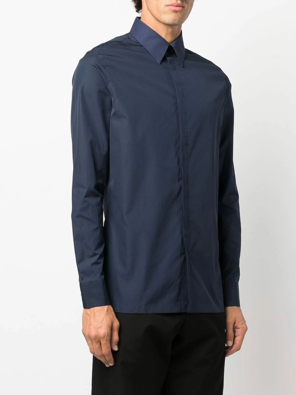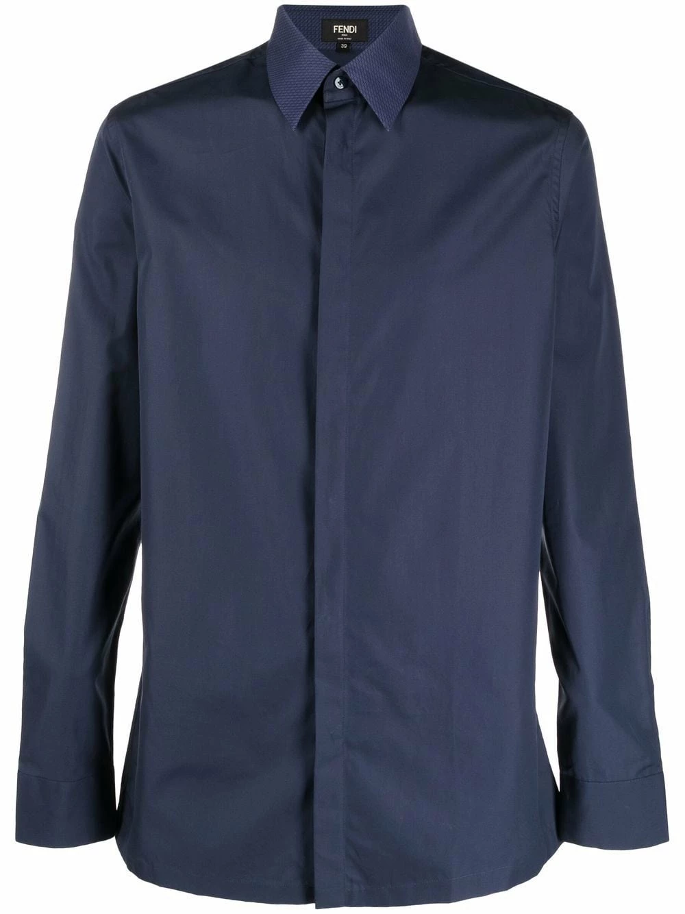Fendi’s sophisticated and opulent style is showcased in this long-sleeve shirt, with a tonal colourway and discreet, concealed front button fastening.Β