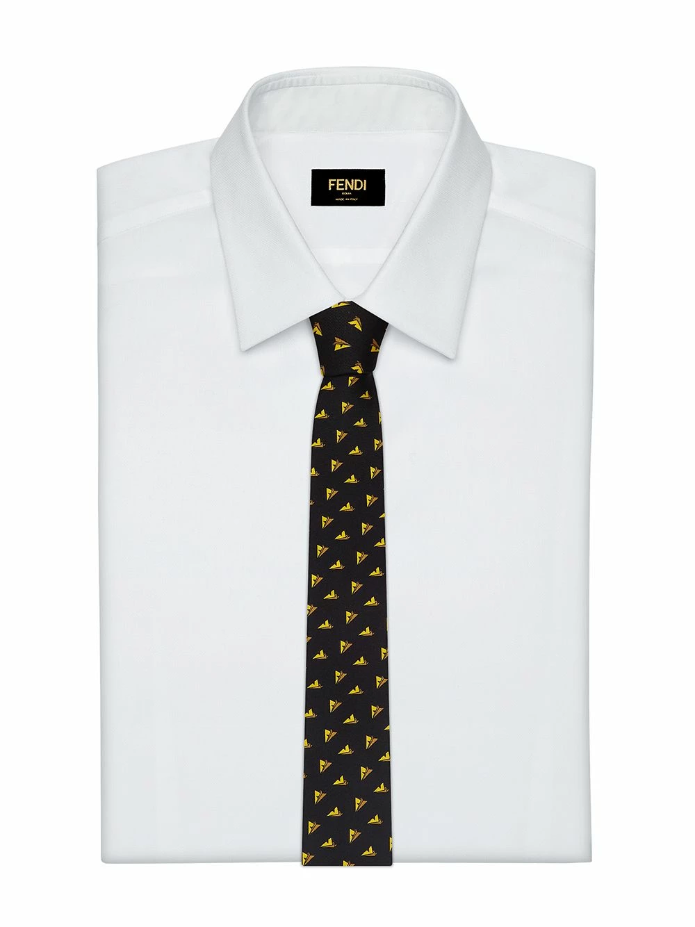 Edgy up your shirt life. Constructed from silk and boasting a Bag Bugs pattern, this Fendi tie will take your style to the next level. Work attire goals.