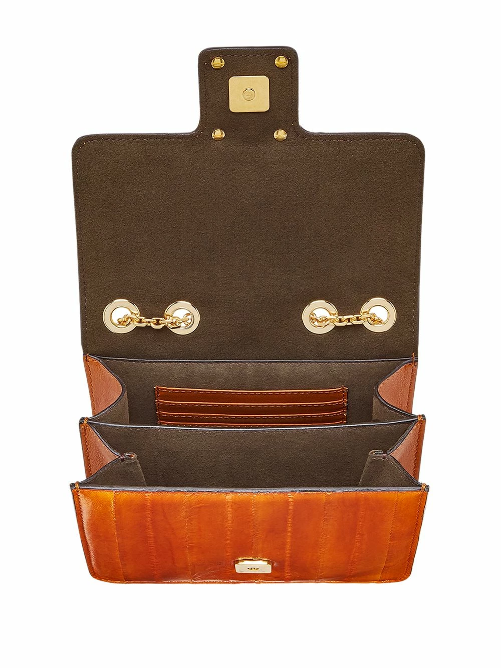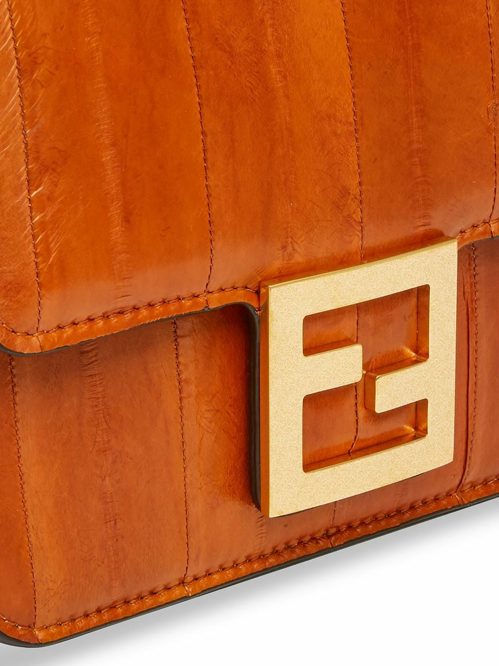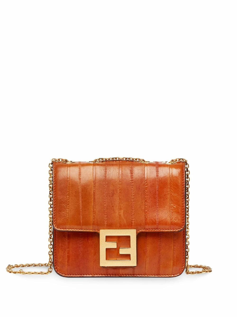 Sadly, best friends are not always around. However, there is one that will never let you down. Meet the Fab shoulder bag from Fendi. Made from caramel brown eel skin, this medium shoulder bag combines style and functionality, the Italian way. BFF material. Featuring a front logo plaque, an adjustable shoulder strap, gold-plated hardware, a foldover top with push-lock closure, interior compartments divided by a partition and multiple interior card slots.