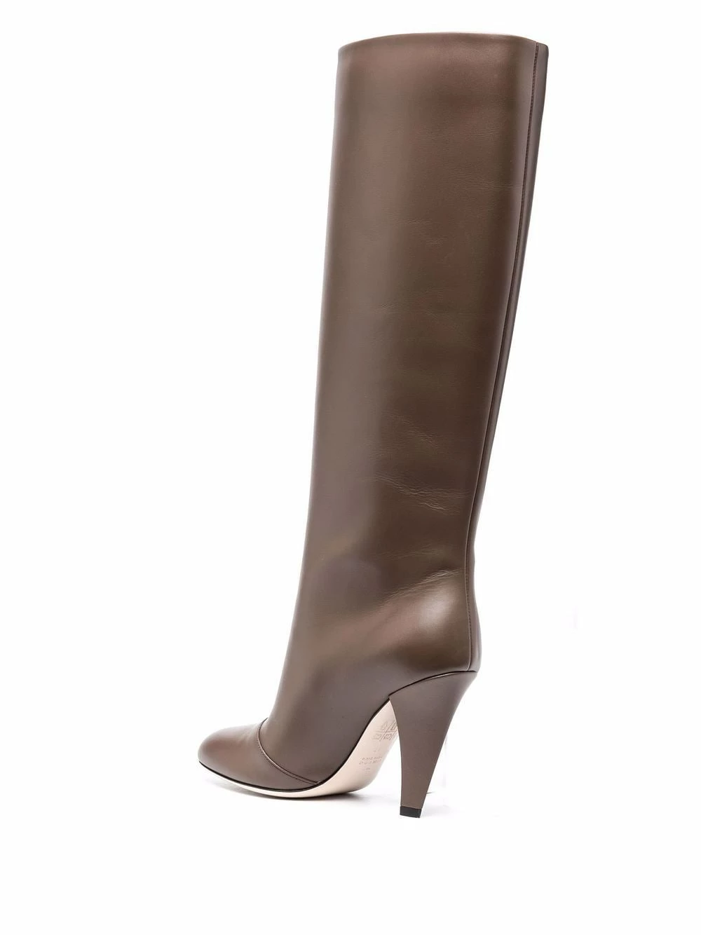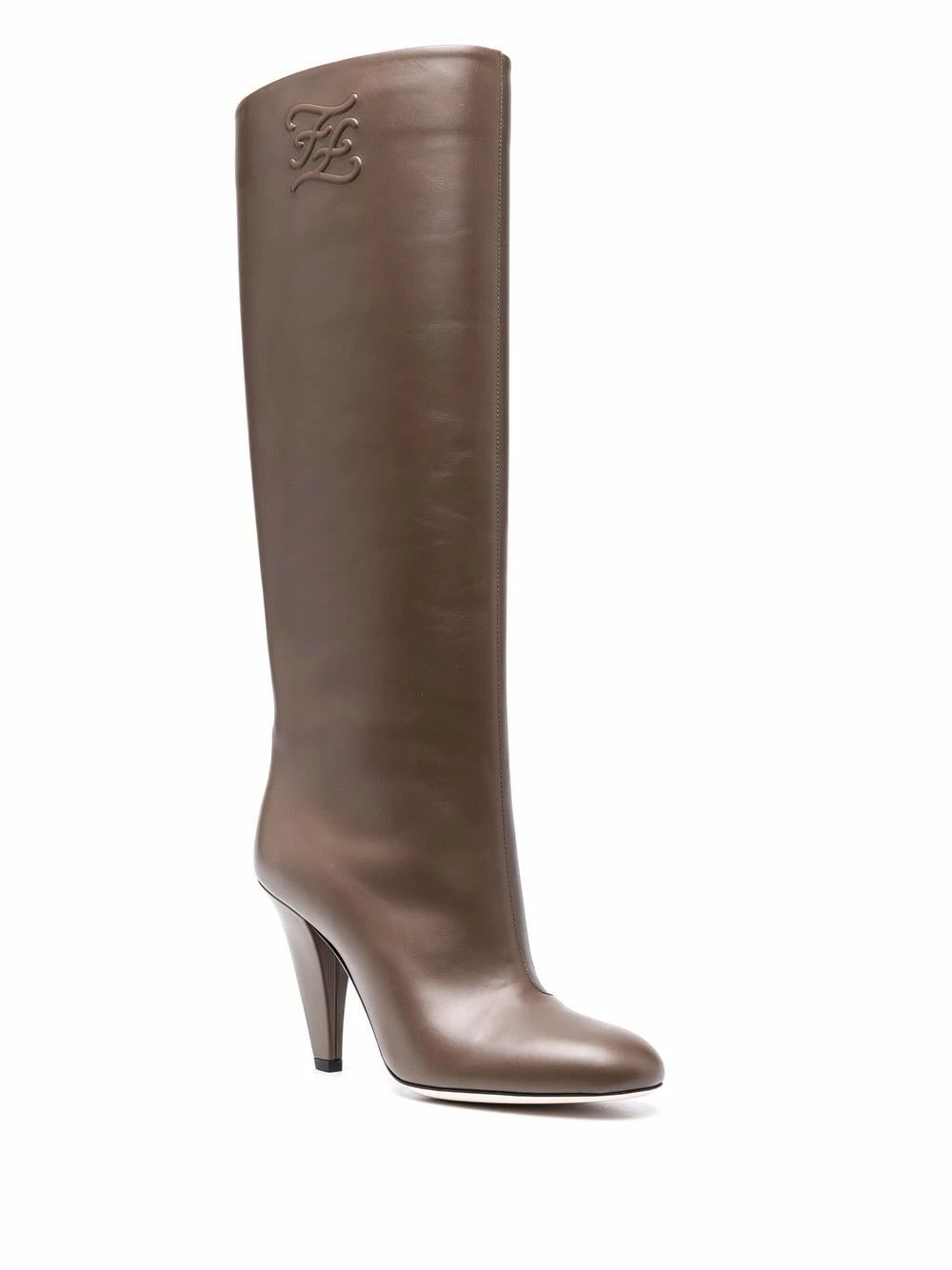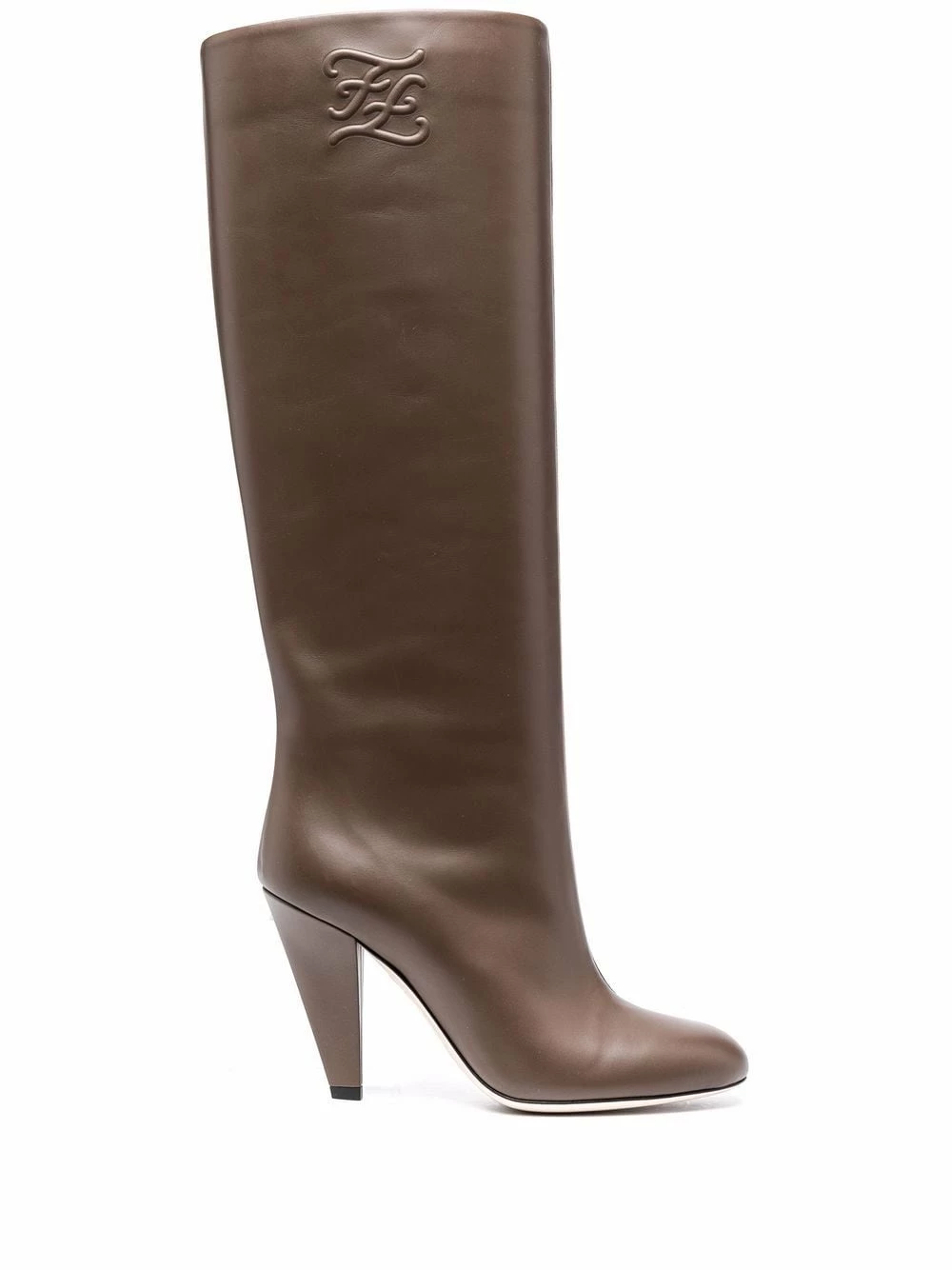 Boasting a tonal design, these Fendi boots are crafted from calf leather and lambskin. A motif seen throughout the AW21 collection, the FF Karligraphy logo appears at the side.