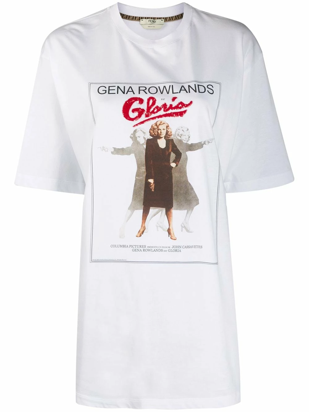 Looking at this Fendi piece our emotions get very close to the surface. Do you see what we did there? Made from white cotton, this Gloria movie print T-shirt will make you want to quote Gena Rowlands, and more…it will make you want to be her – not literally speaking because we wouldn’t want you hitting anybody. Let’s get ready to impress! Featuring a ribbed round neck, short sleeves, a straight hem and sequin embroidery.