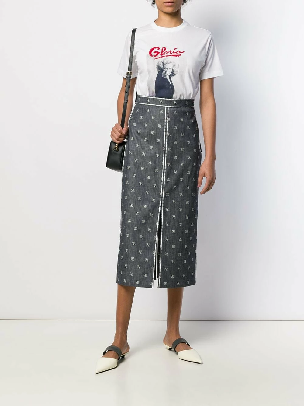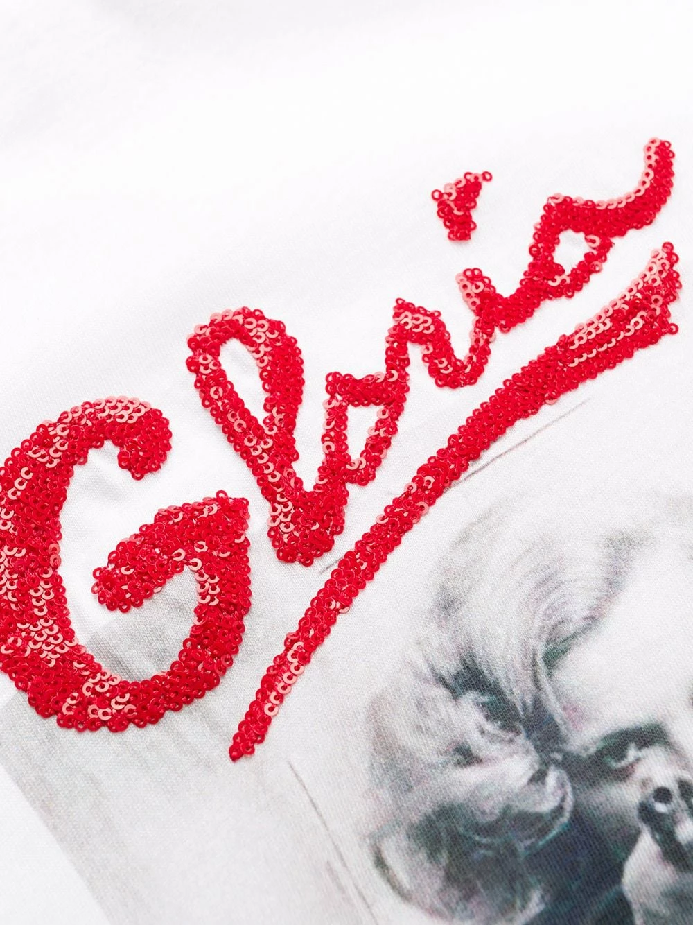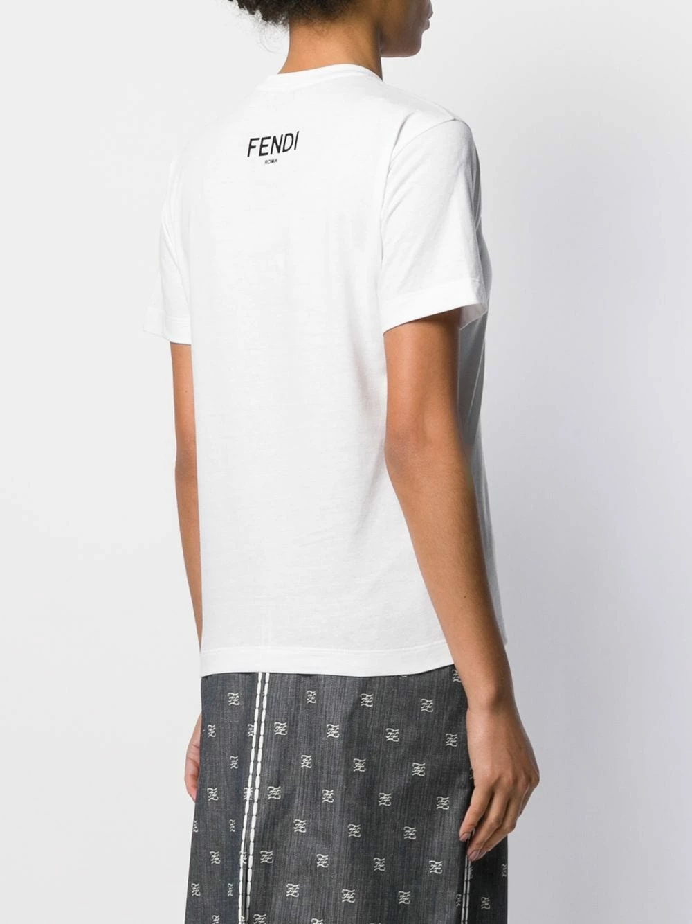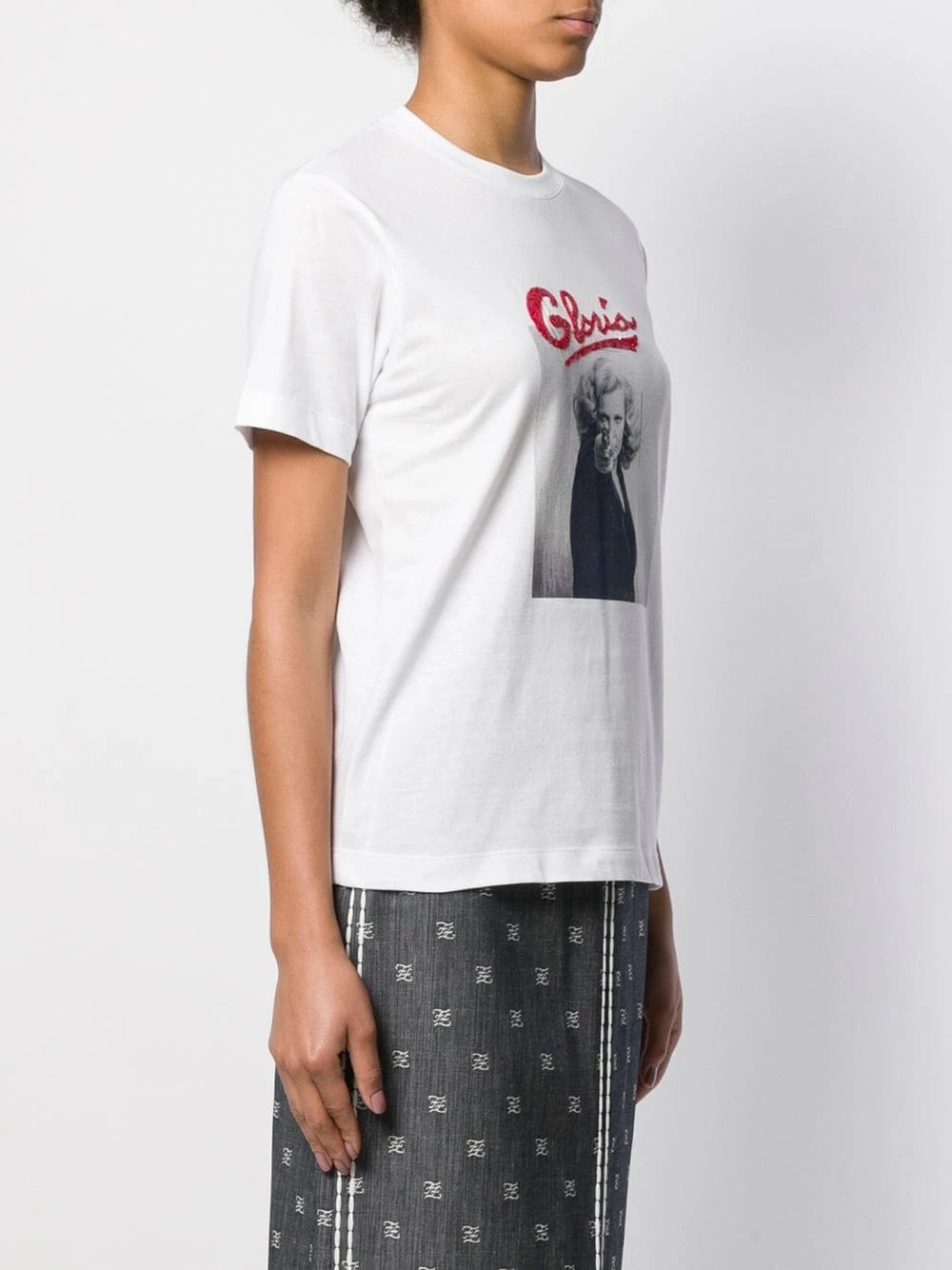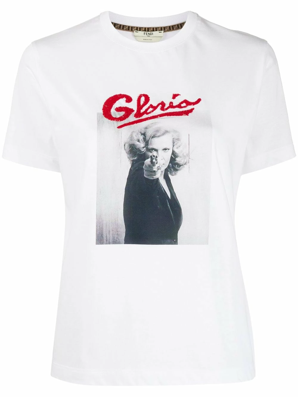 A black and white still from John Cassavete’s ’80s thriller, Gloria, is printed on the front of this white cotton T-shirt from Fendi. It is topped with red sequin embroidery, spelling out the name of the film. For all the film buffs out there, this is one to add to your wishlist. Featuring a round neck, short sleeves, sequin embroidery, a straight hem, a print to the front from the movie Gloria and logo lettering to the rear.