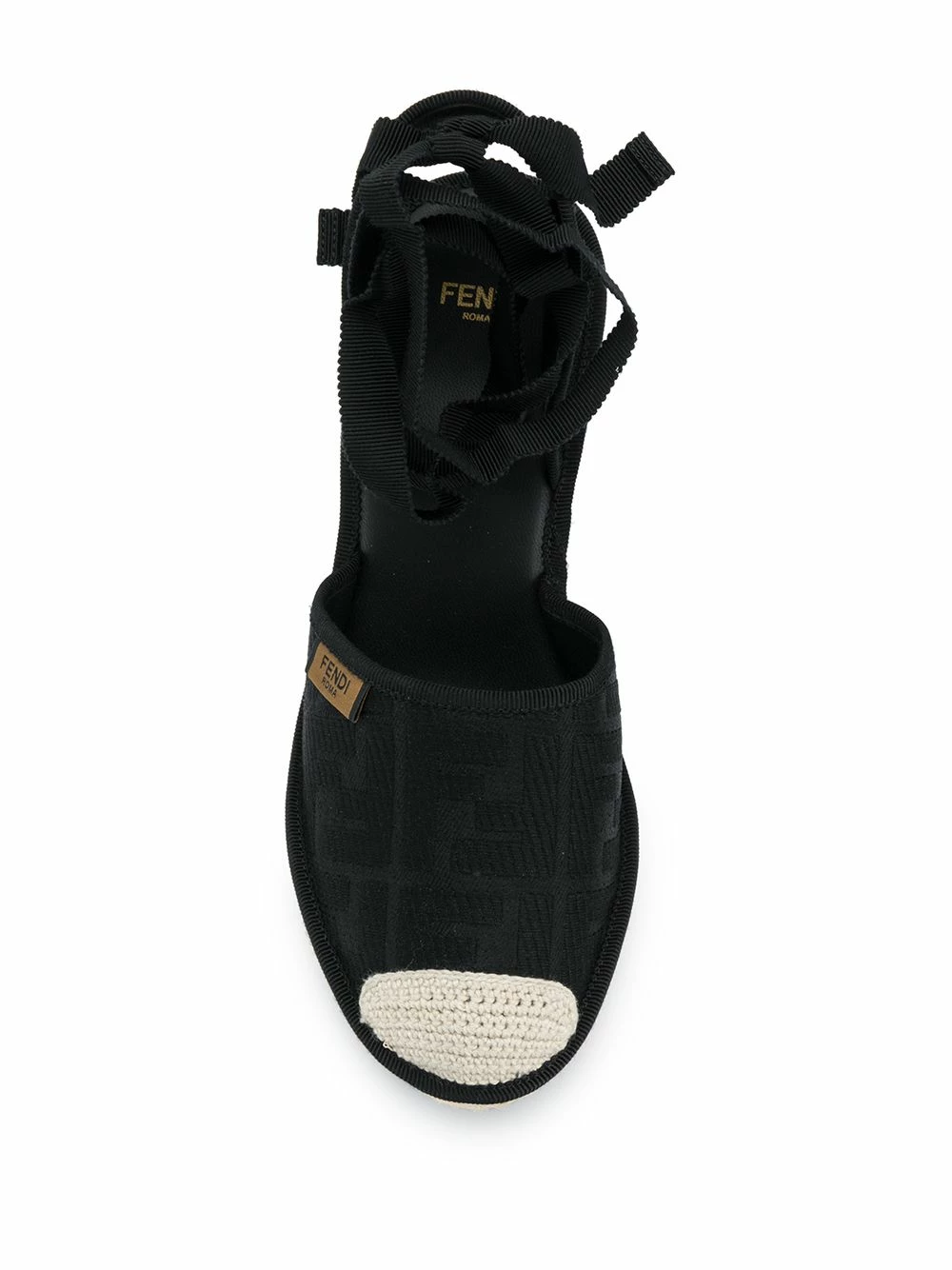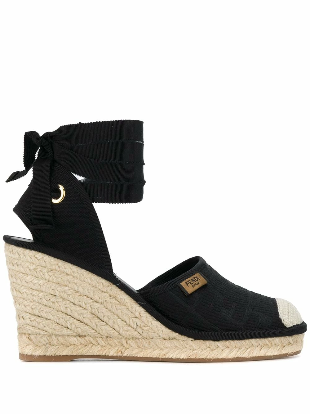 Feeling like shoving logomania to people’s faces? We’ll help you with that. Let all these jacquard FF motifs on these black cotton espadrilles from Fendi do the talking. Sounds like a winner.