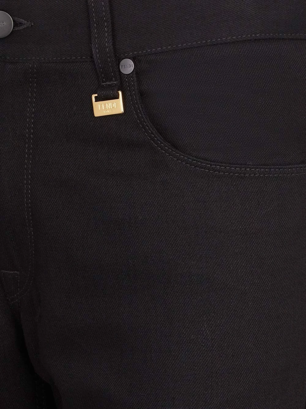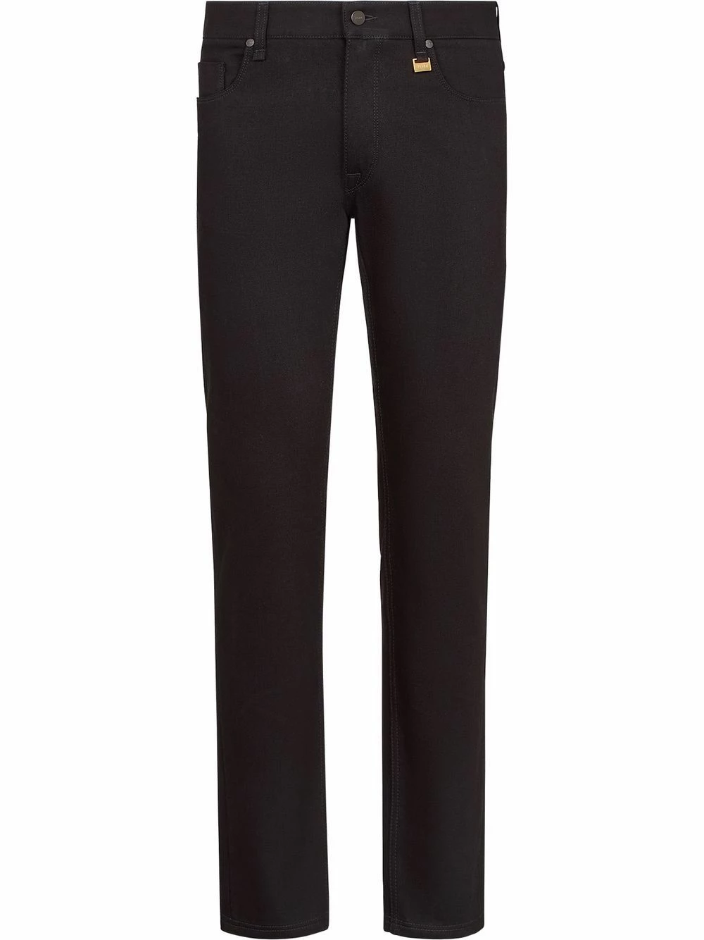 Fendi presents its take on a classic style with these slim-fit denim jeans. Made from cotton, this wardrobe staple is subtly detailed with a gold-tone logo plaque attached to a front belt loop and a tonal logo patch to the back.