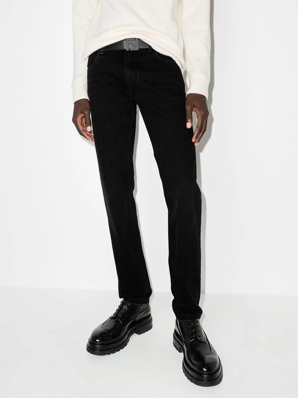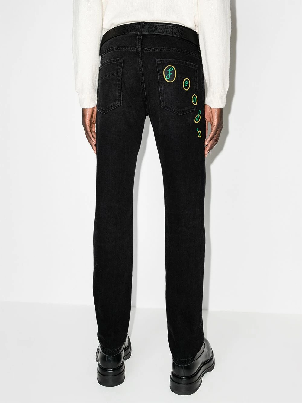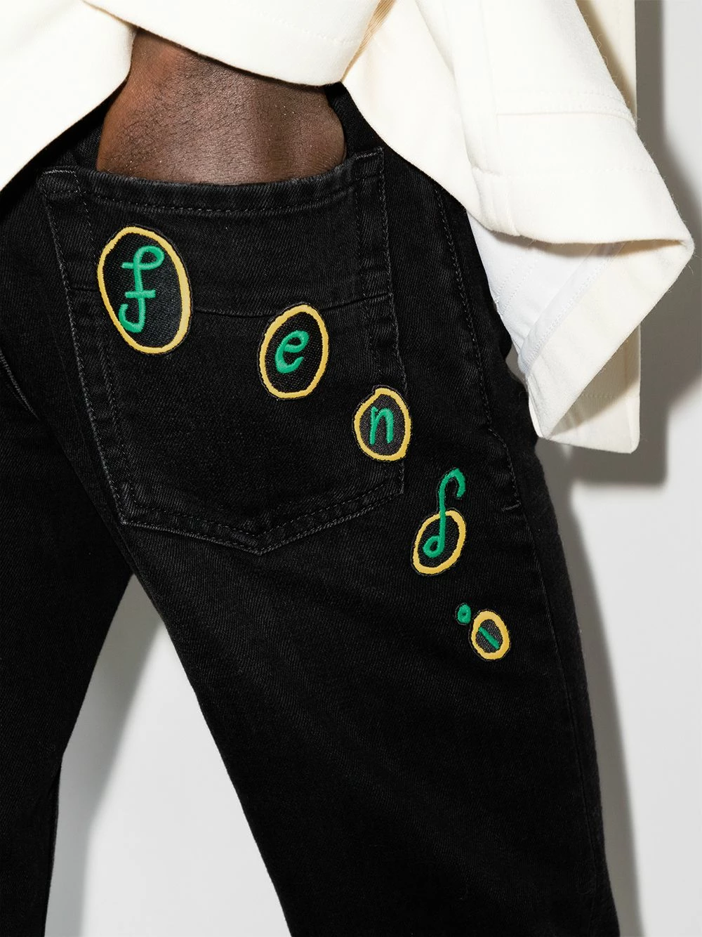 Fendi reinvents classic slim-cut jeans with a playful twist by the artist Noel Fielding. This black pair is accented with the artist’s vision of the brand’s signature stitched with vibrant green and yellow threads.