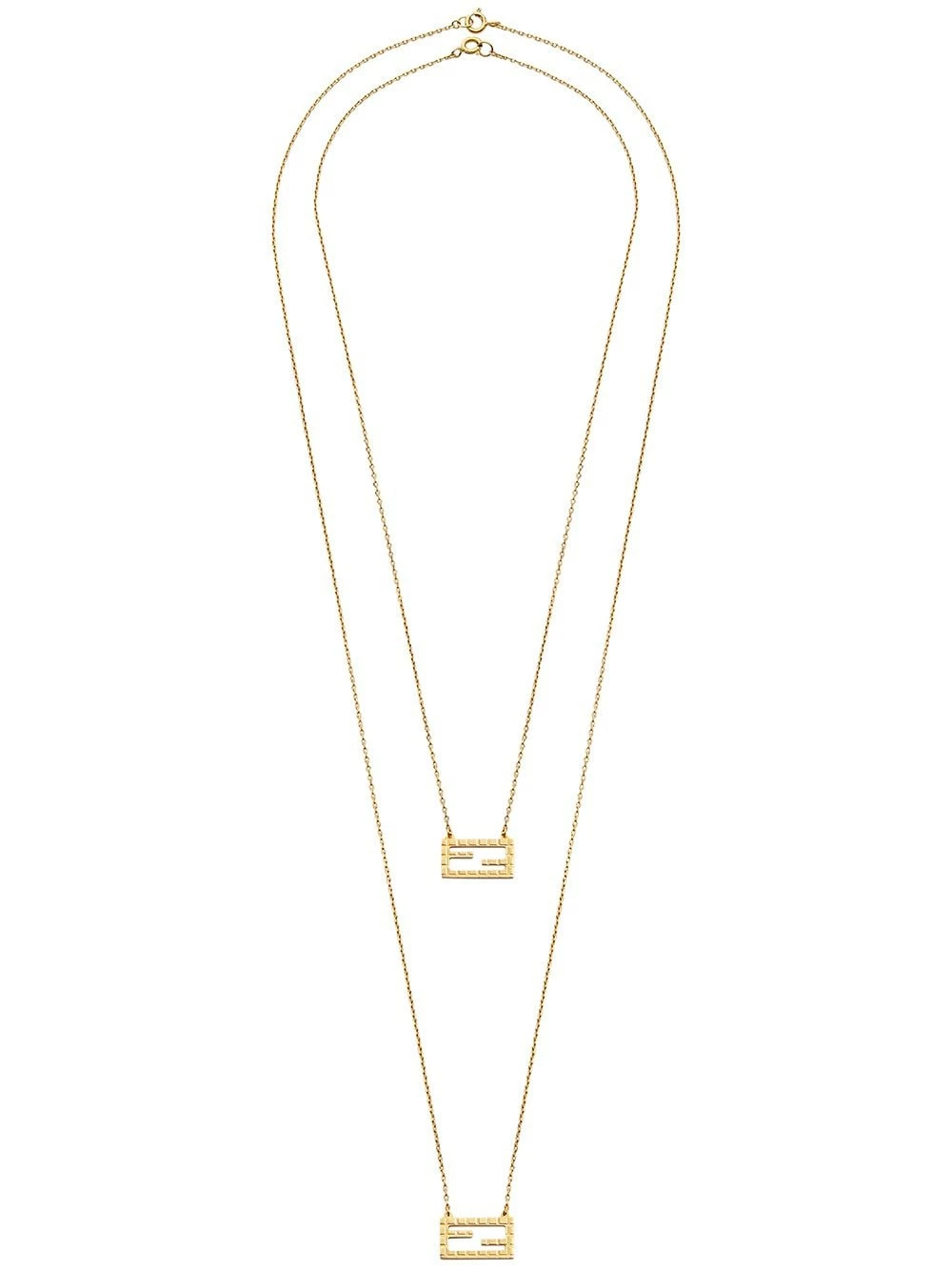 F is fantastic, fierce and Fendi. These gold-tone necklaces come in a short and long length and boast the signature FF pendant. Layer on up.Β