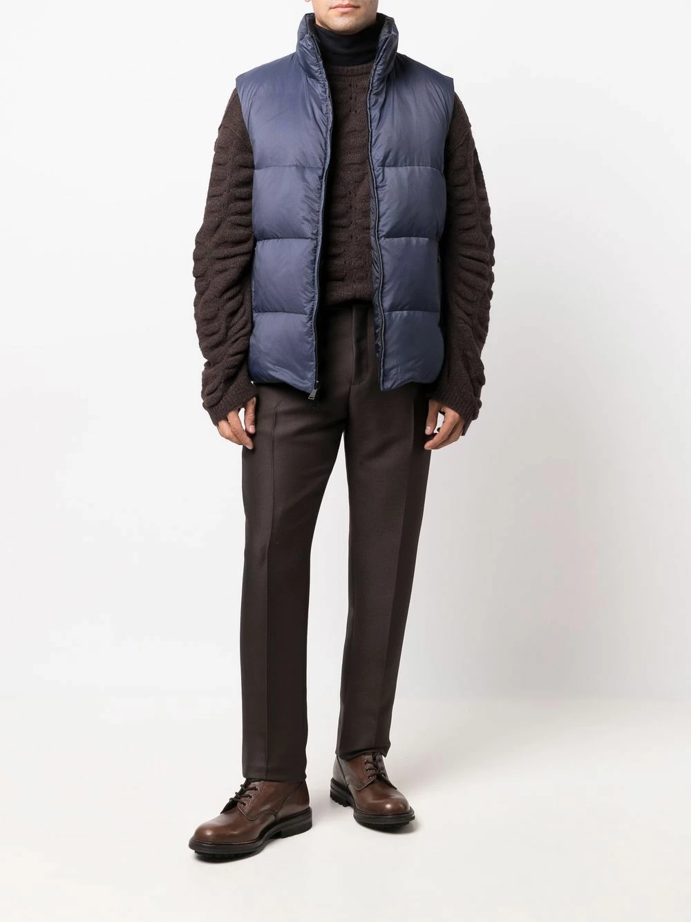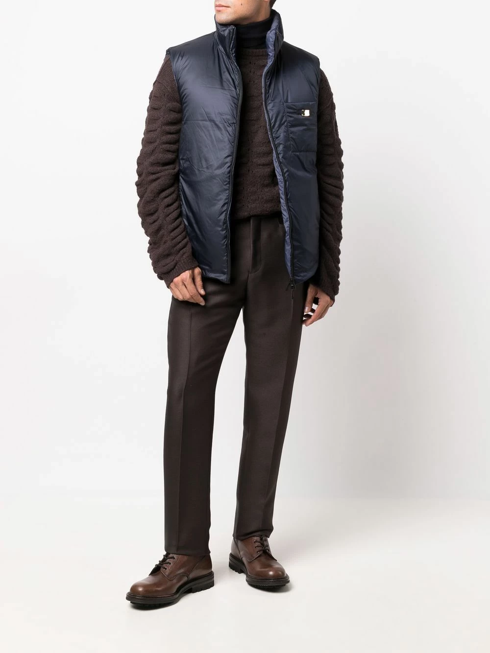 Fendi pairs the brand’s signature opulence with timeless design in this tonal gilet design. Fully padded, it also adds a funtional element to the garment.Β