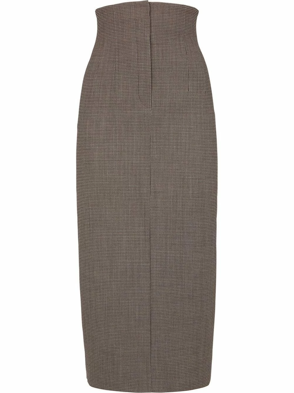 Fendi’s wool skirt is characterised by a pencil design and a high waist. It is finished with a geometric micro pattern that adds texture to the piece.