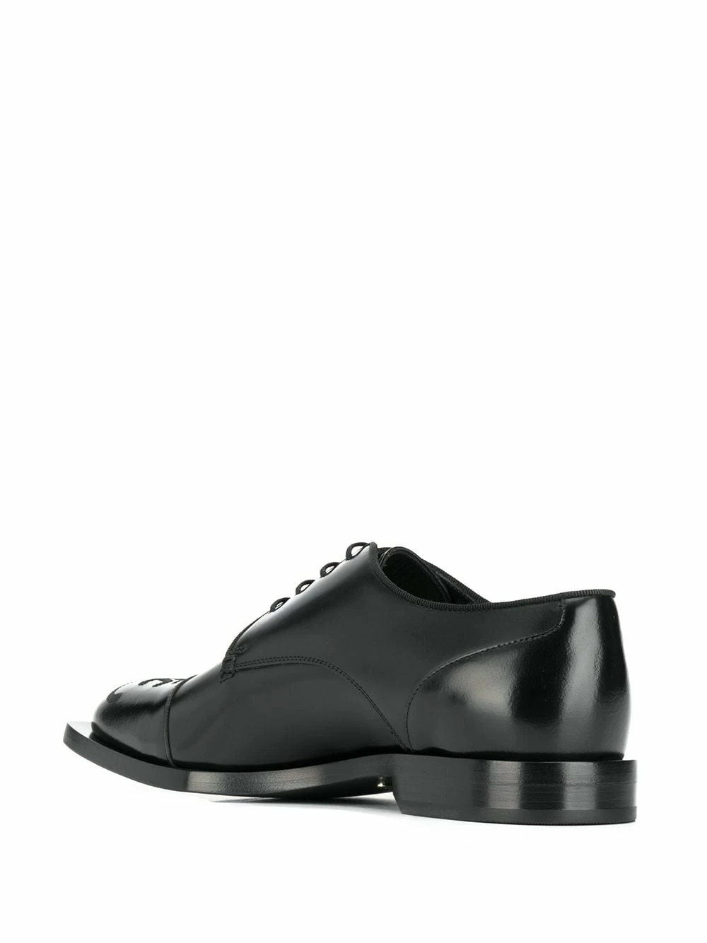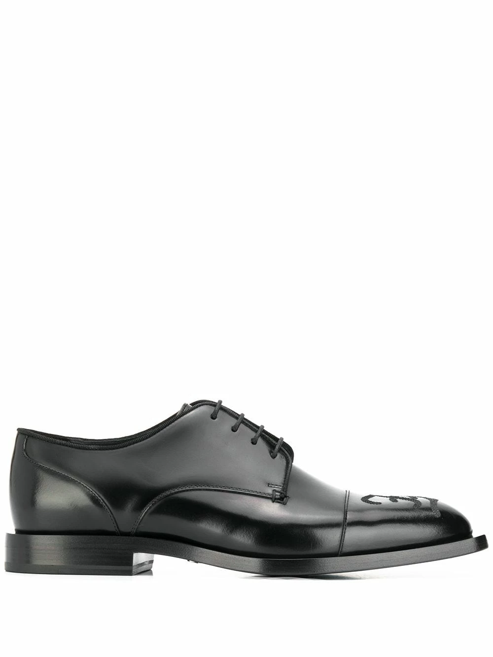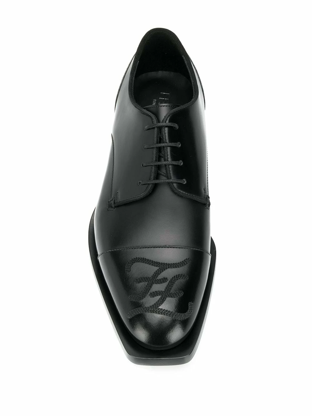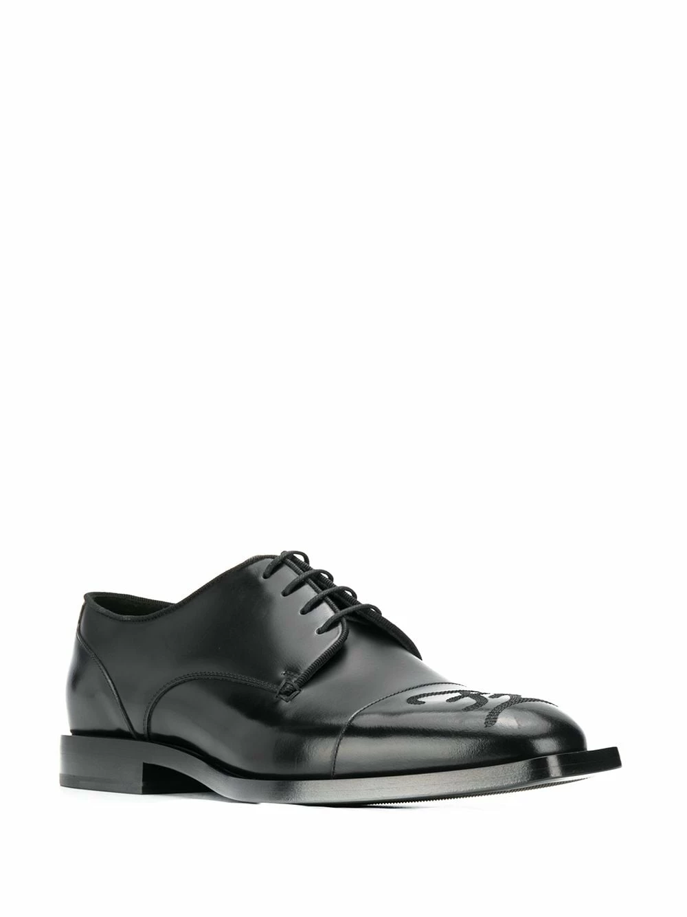Fendi doesn’t only provide you with these black calf leather Karligraphy Derby shoes to protect your feet. It also teaches you the art of calligraphy. Featuring stitched panels, embroidered details, a lace-up front fastening, an almond toe, a chunky low block heel, a leather sole and a branded insole.