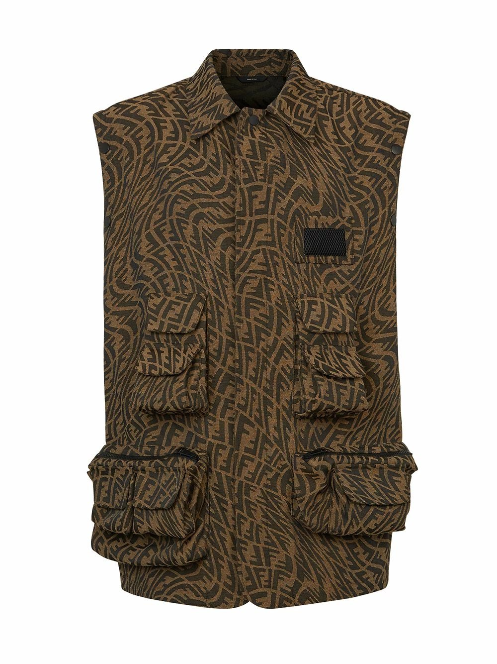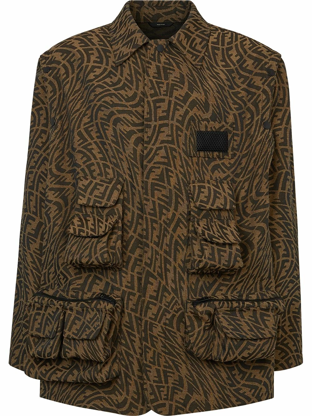 Being versatile is key to living a well-rounded life. So it only makes sense that this monogram pattern shirt jacket from Fendi joins you for the ride with detachable sleeves that allow you to change up the look whenever needed or desired. Make a difference.