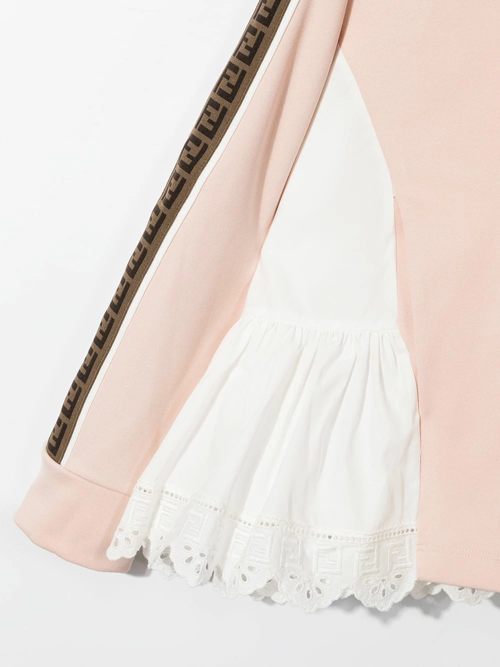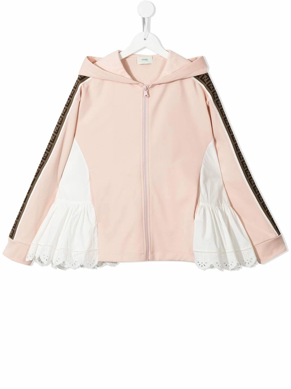 Famously created by Karl Lagerfeld, the FF monogram now represents the history and values of Fendi that spans more than 100 years. Used at the side of this long-sleeve hoodie, alongside a contemporary, scallop-edge silhouette, this heritage element is brought to life in a lively modern design for the Fendi Kids collection.