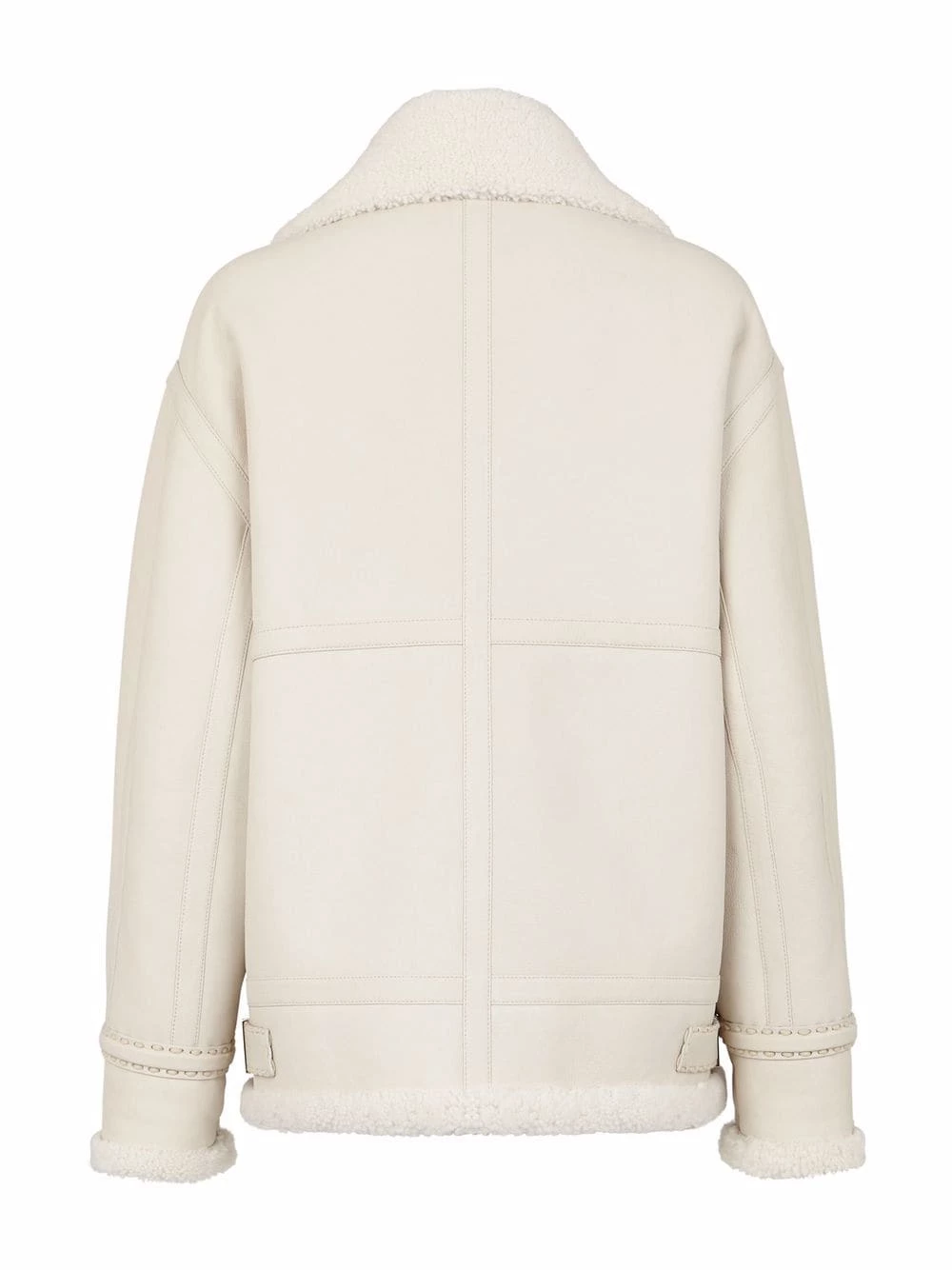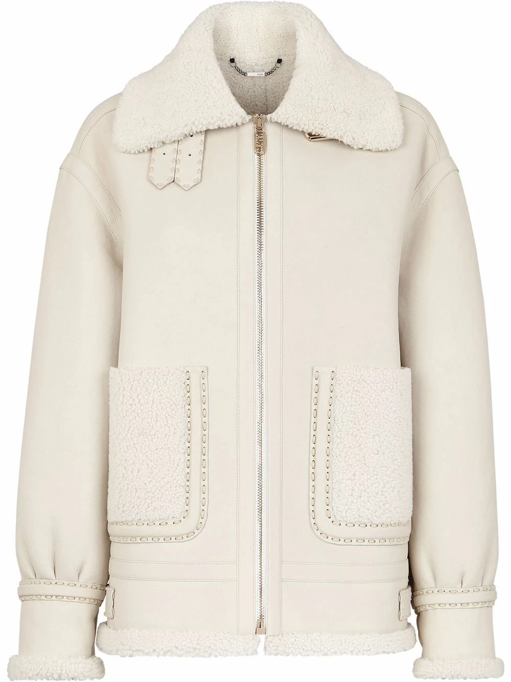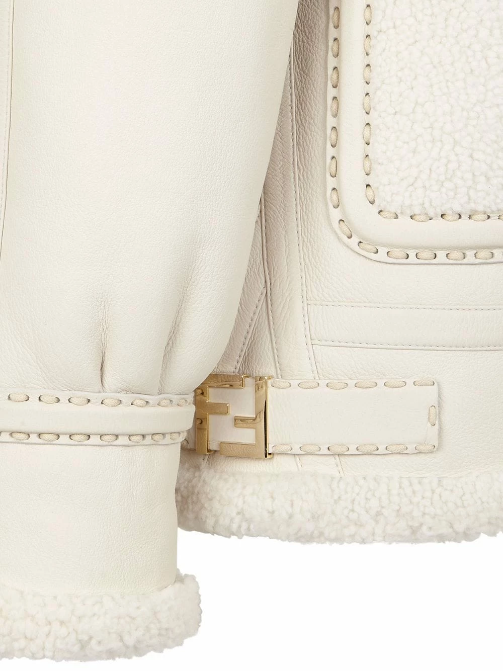 Fendi adds its signature twist to the aviator jacket. Retaining the shearling detailing that characterises the design, it showcases a neutral colour palette and the Italian house’s Selleria stitching – a technique that replicates the practices of Roman master saddlers.