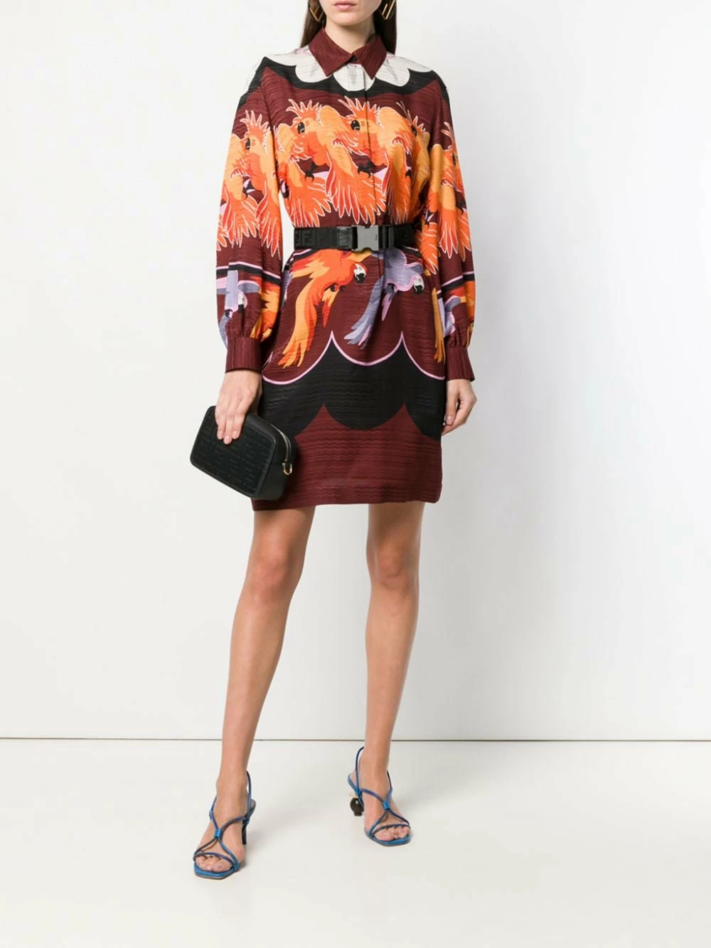 Fendi is all about sophisticated and trendsetting designs that showcase the brandβs contemporary and fashionable nature, as seen here with this multicoloured silk parrot print shirt dress. Featuring a classic collar, long sleeves, a front button placket and a belted waist.