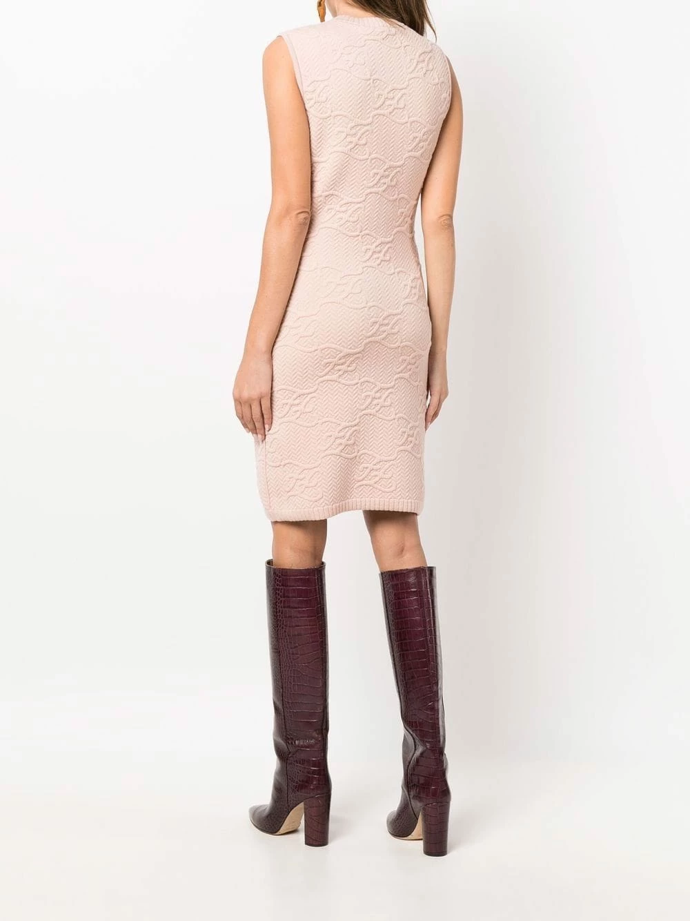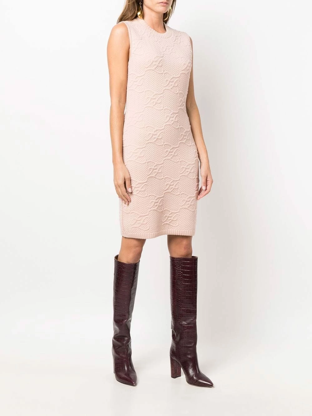 Constructed in a virgin wool and cashmere blend, this sleeveless FENDI dress is produced in a light pink design. Showcasing a fitted silhouette and round neck, the Italian-crafted garment transcends seasons.Β