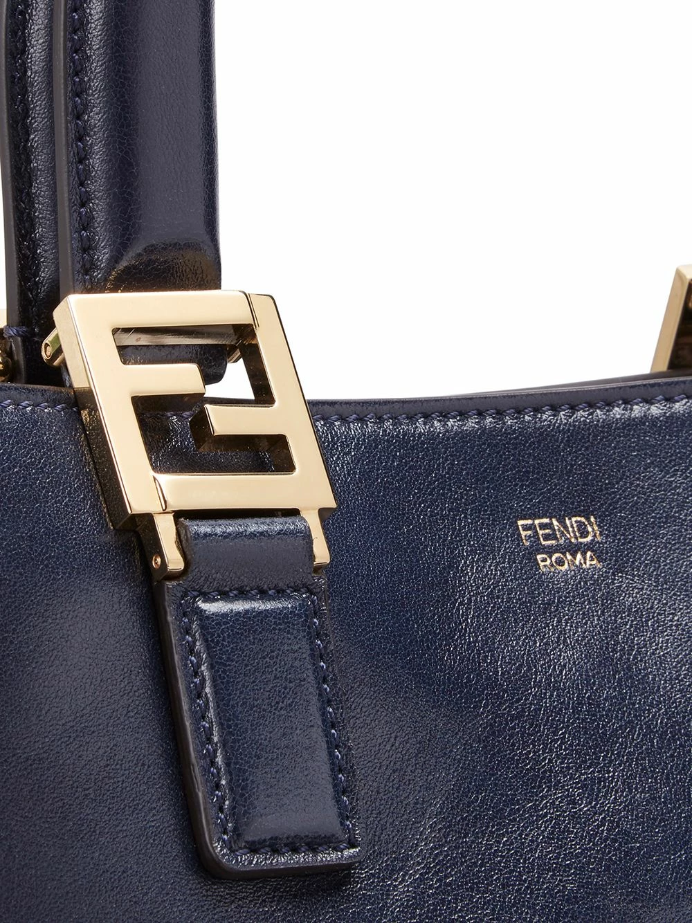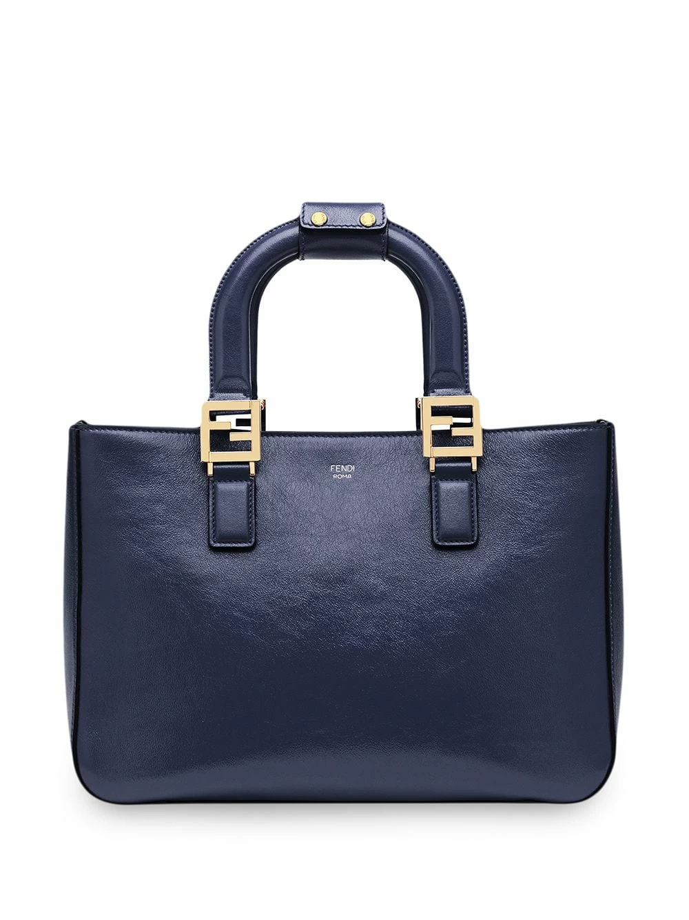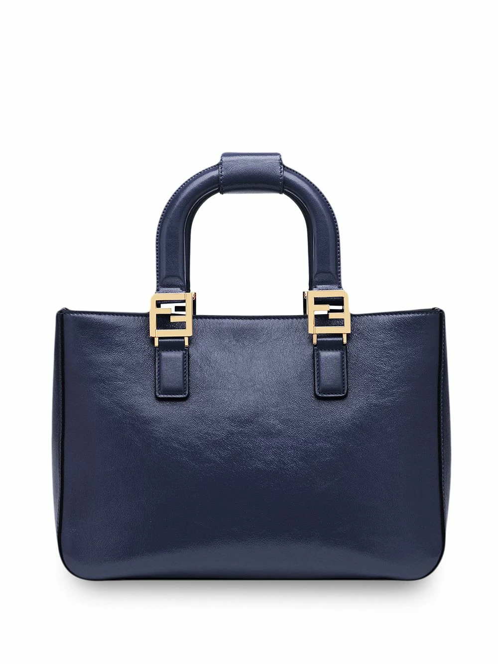 There’s nothing more beautiful than a woman who’s so confident that she doesn’t feel the need to compete. And hey, this Fendi piece screams girl power. Made from midnight blue calf leather, this small FF tote will make you feel like Wonder Woman when she fought Harley Quinn. Only in this case, you would make friends, not foes, because true girl power is about admiring and flattering each other. Brace yourself for all the compliments! Featuring a front centre logo stamp, gold-tone hardware, a top magnetic closure, a full lining, an internal zipped pocket, top handles with snap button fastening details and FF details.