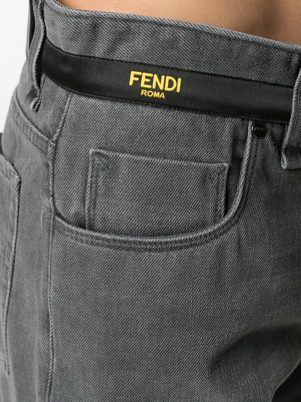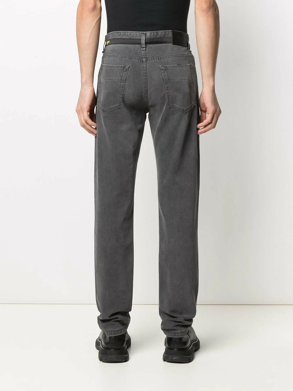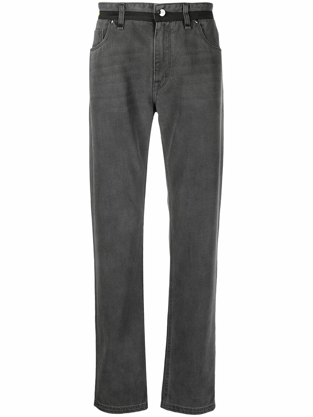 Expand your denim empire with these straight-leg jeans from Fendi. Designed with a logo-printed faux belt at the waist, these casual pair are sure to complement your laid-back look.